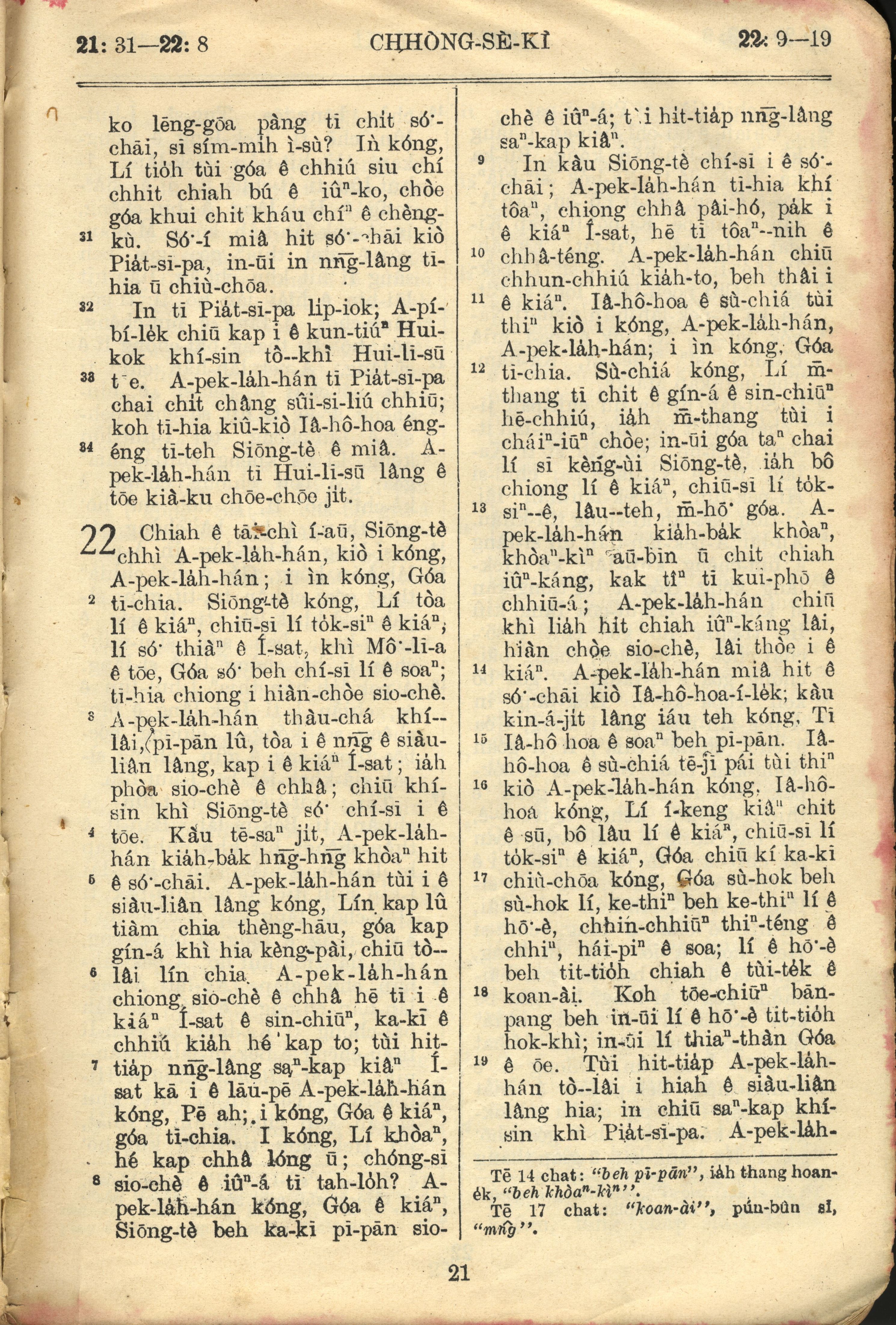 1957年巴克礼全罗台语圣经串珠版 创世记 21 章 31 节到 22 章 19 节