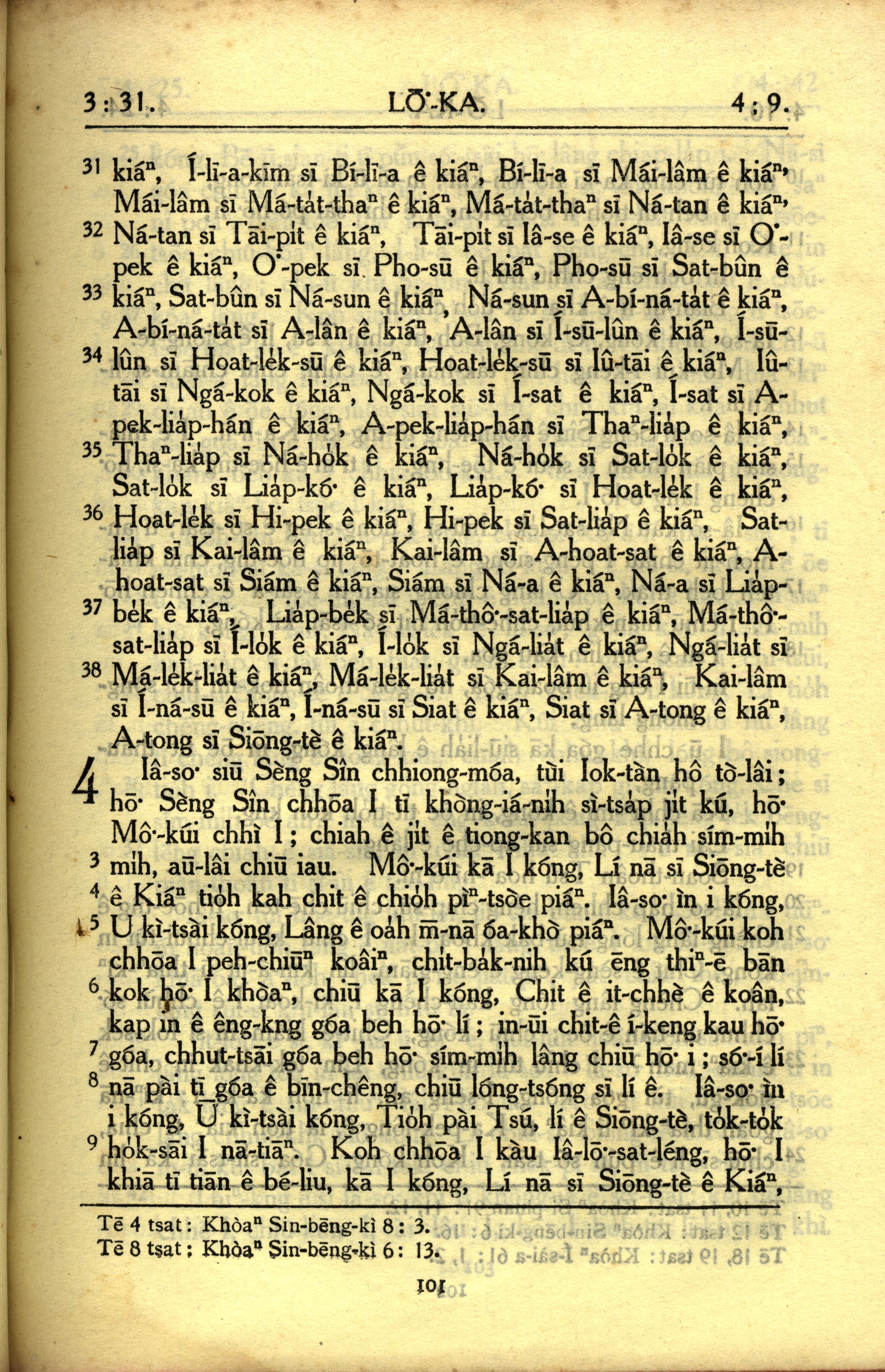 1950年教罗新约全书 路加福音 3 章 31 节到 4 章 9 节