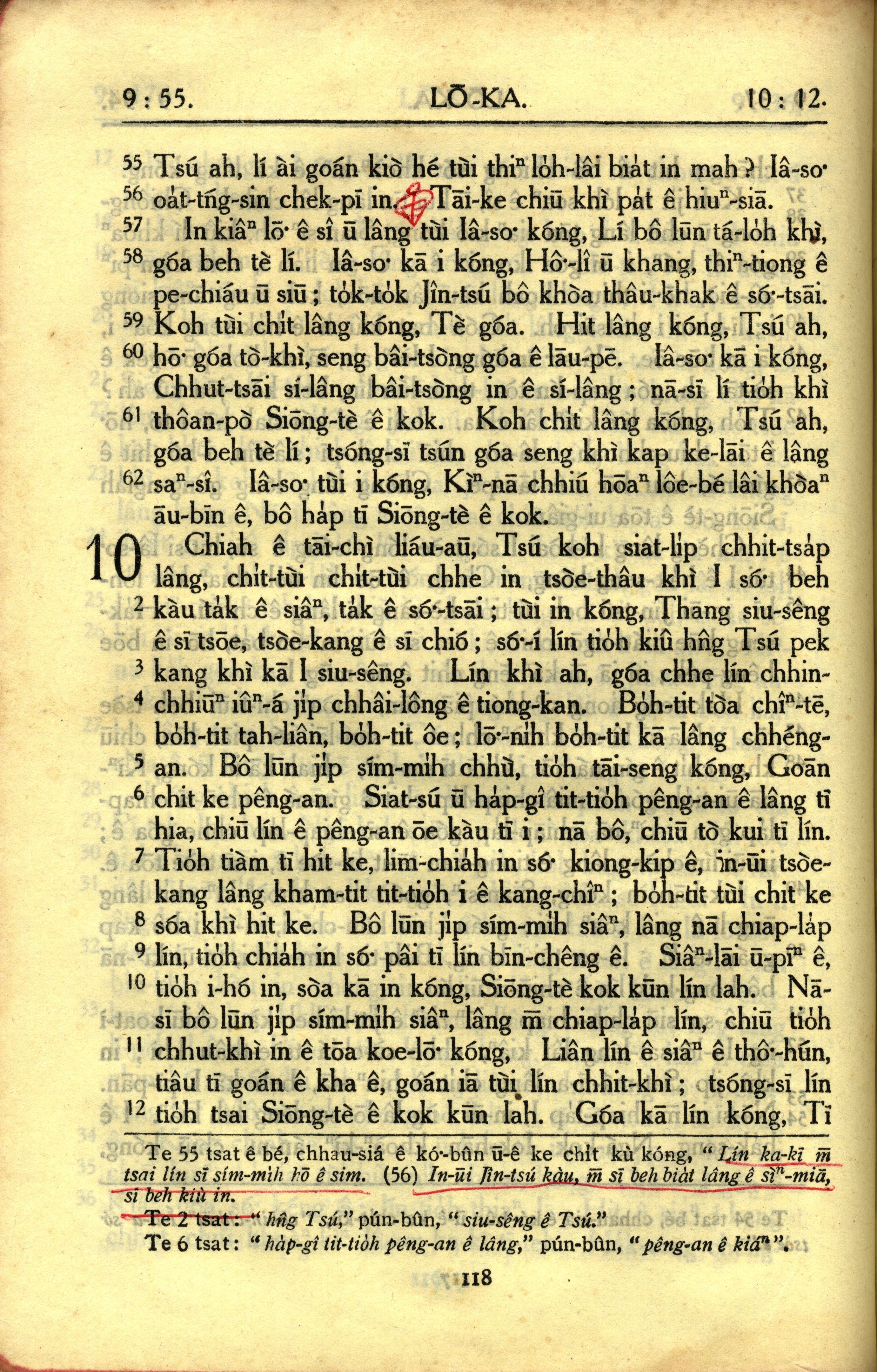 1950年教罗新约全书 路加福音 9 章 55 节到 10 章 12 节