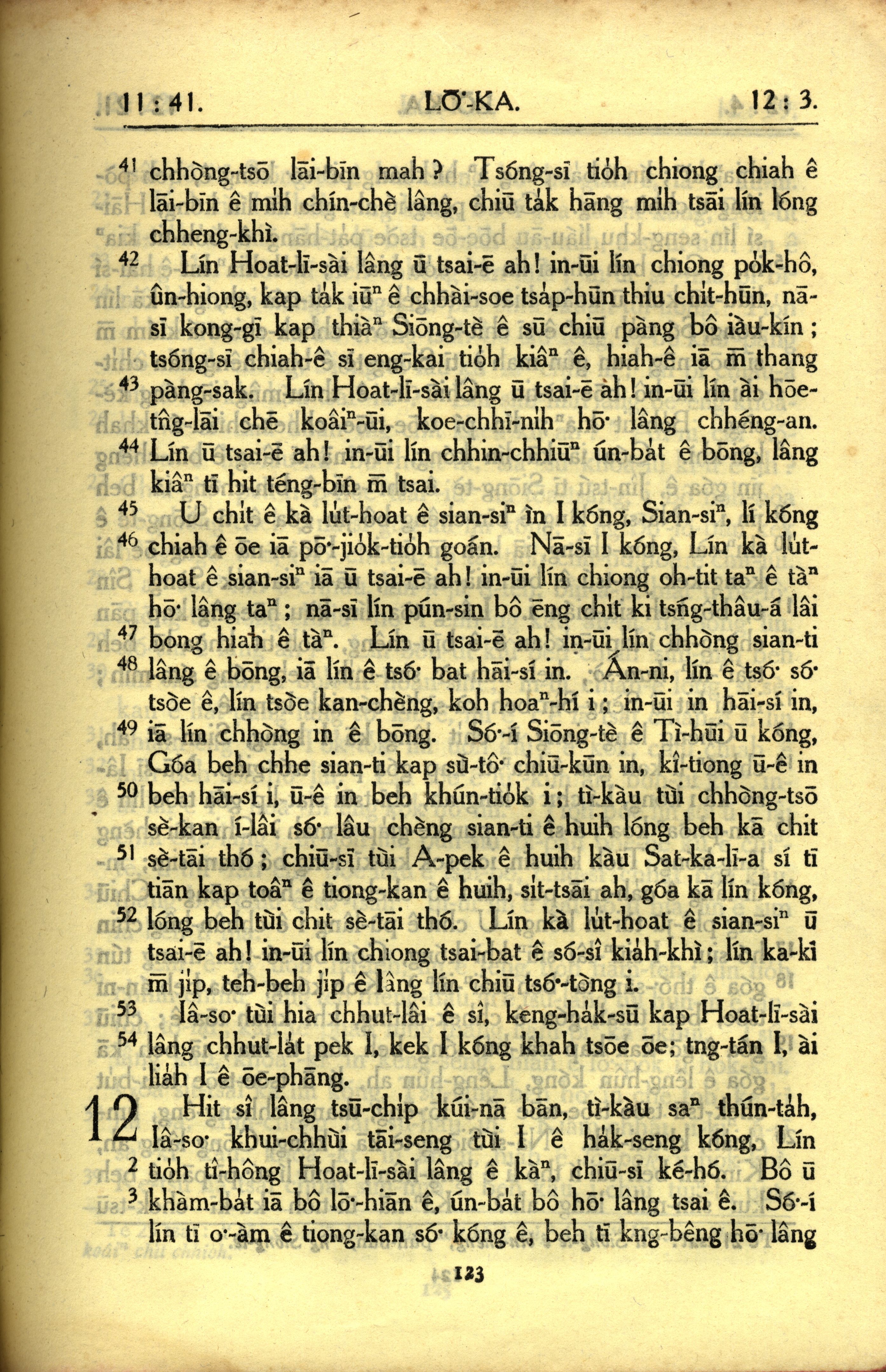 1950年教罗新约全书 路加福音 11 章 41 节到 12 章 3 节
