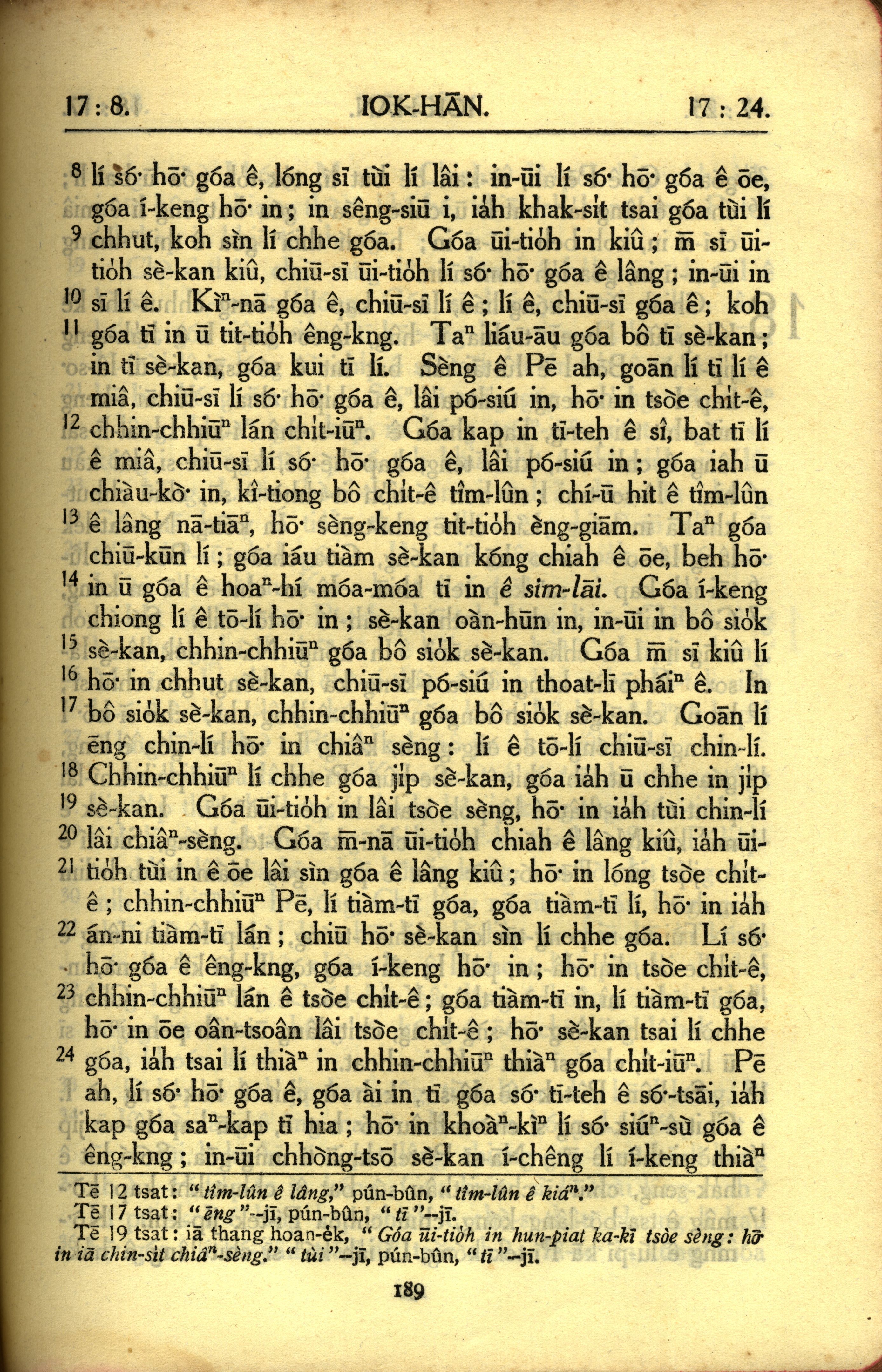 1950年教罗新约全书 约翰福音 17 章 8 节到 17 章 24 节