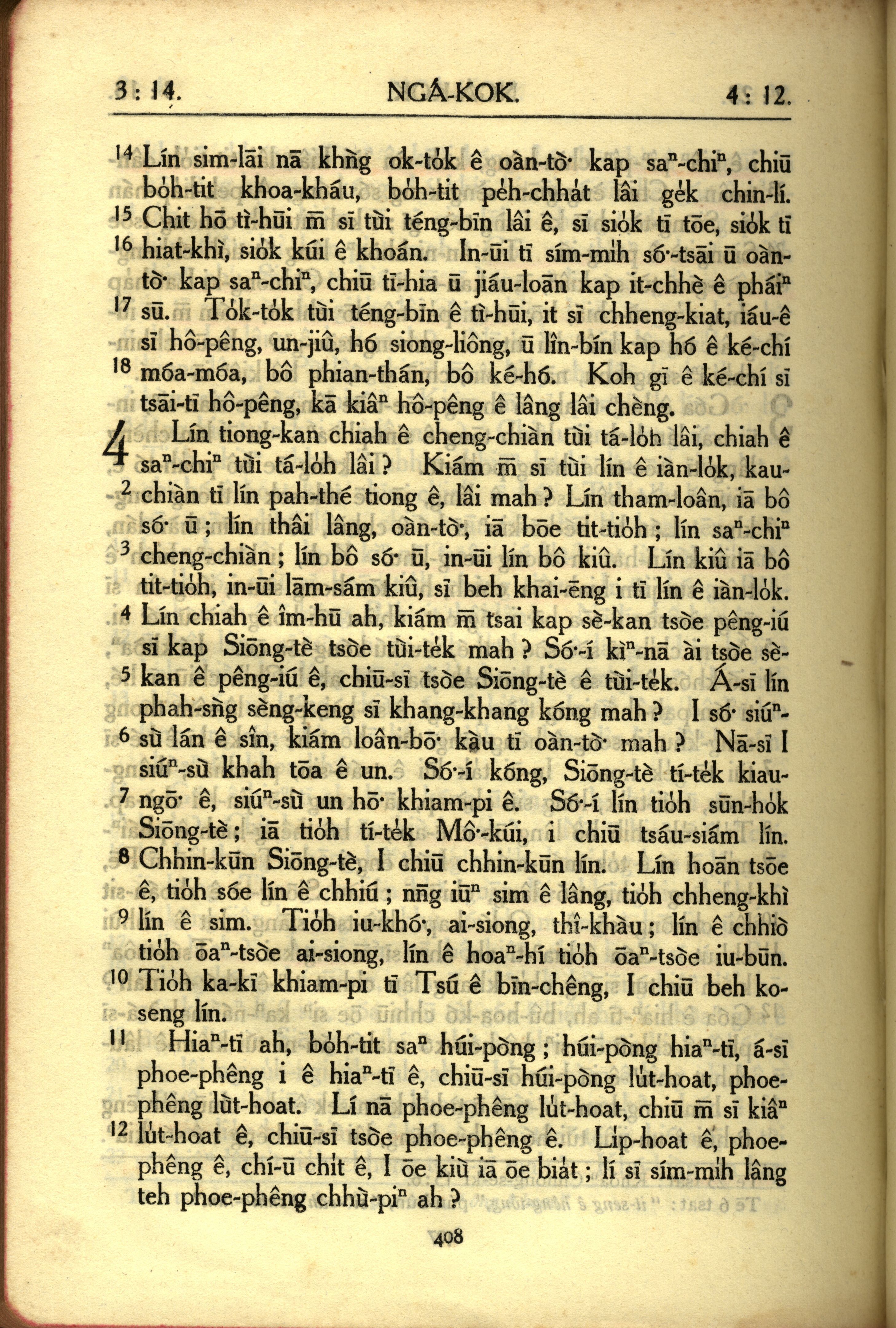 1950年教罗新约全书 雅各书 3 章 14 节到 4 章 12 节