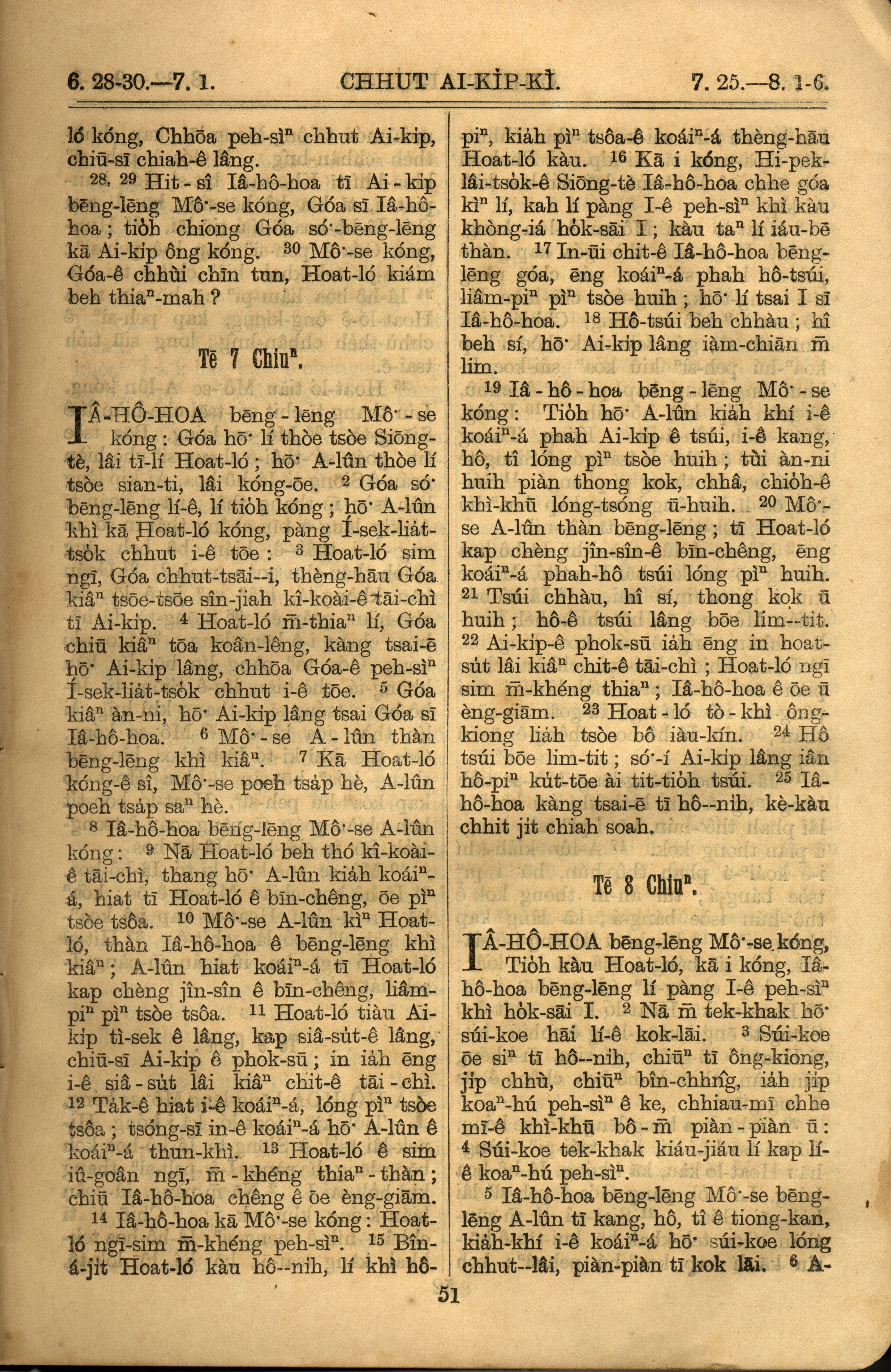 1921年罗马字旧约全书 出埃及记 6 章 28 节到 8 章 6 节
