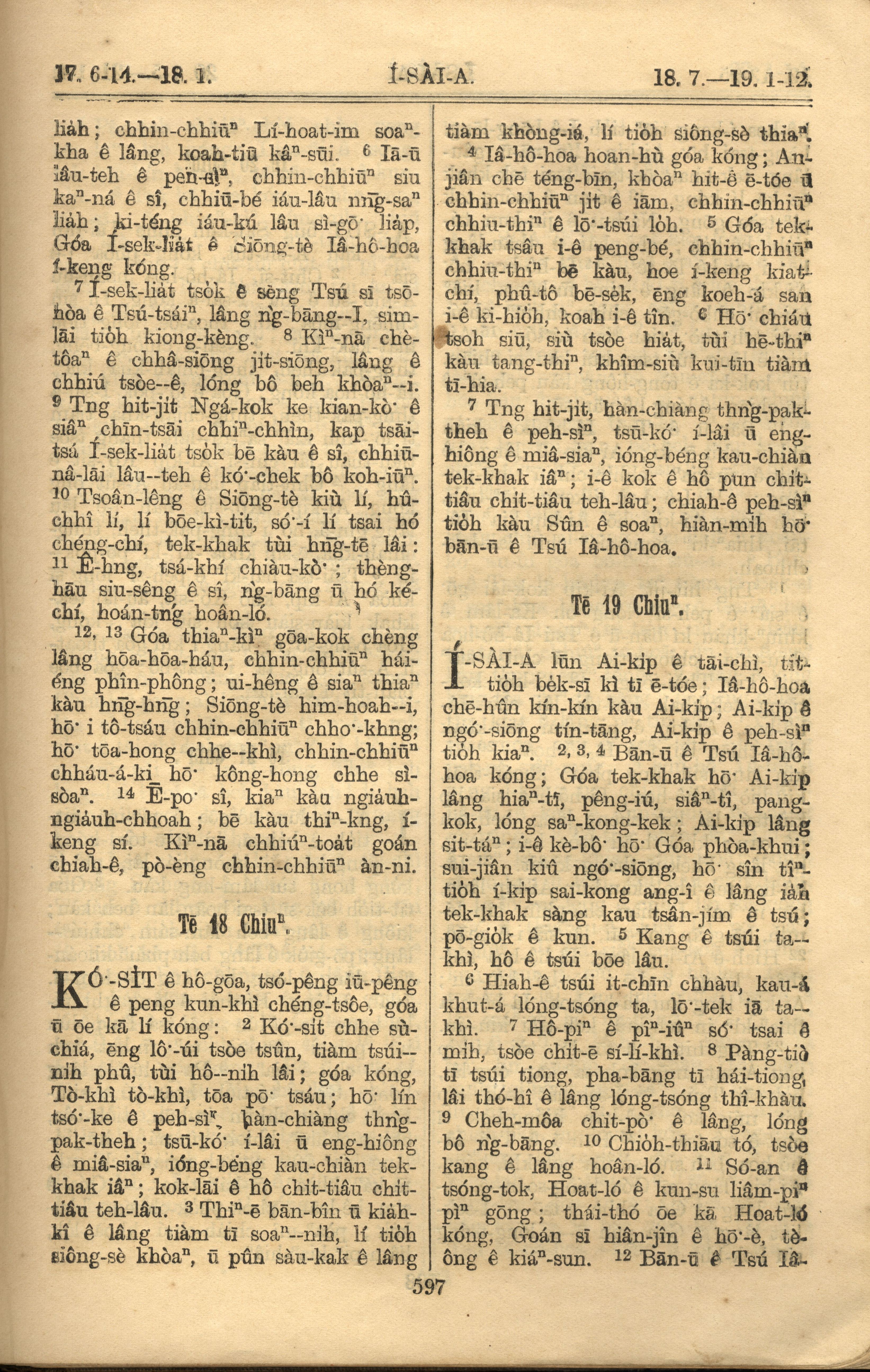 1921年罗马字旧约全书 以赛亚书 17 章 6 节到 19 章 12 节