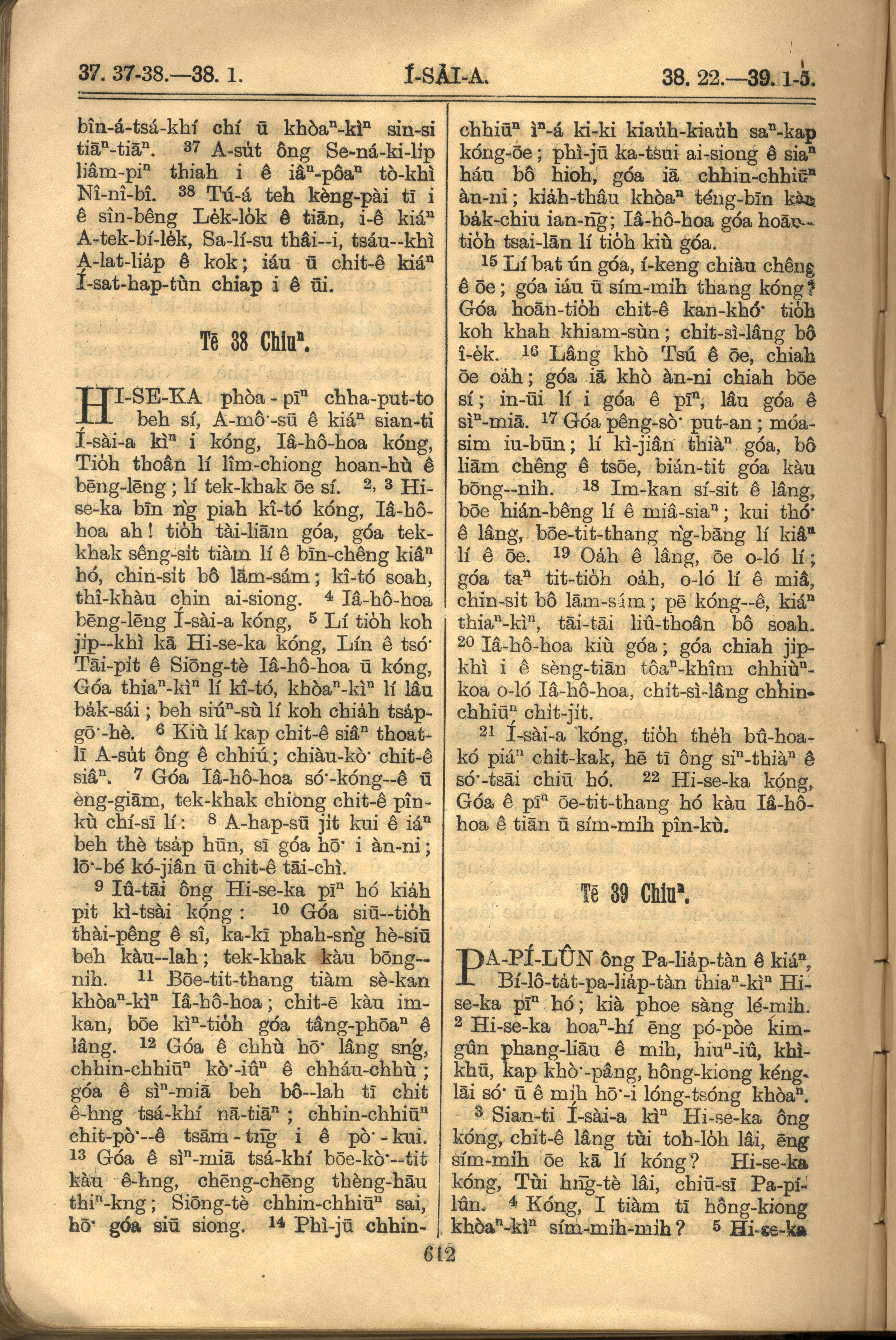 1921年罗马字旧约全书 以赛亚书 37 章 37 节到 39 章 5 节