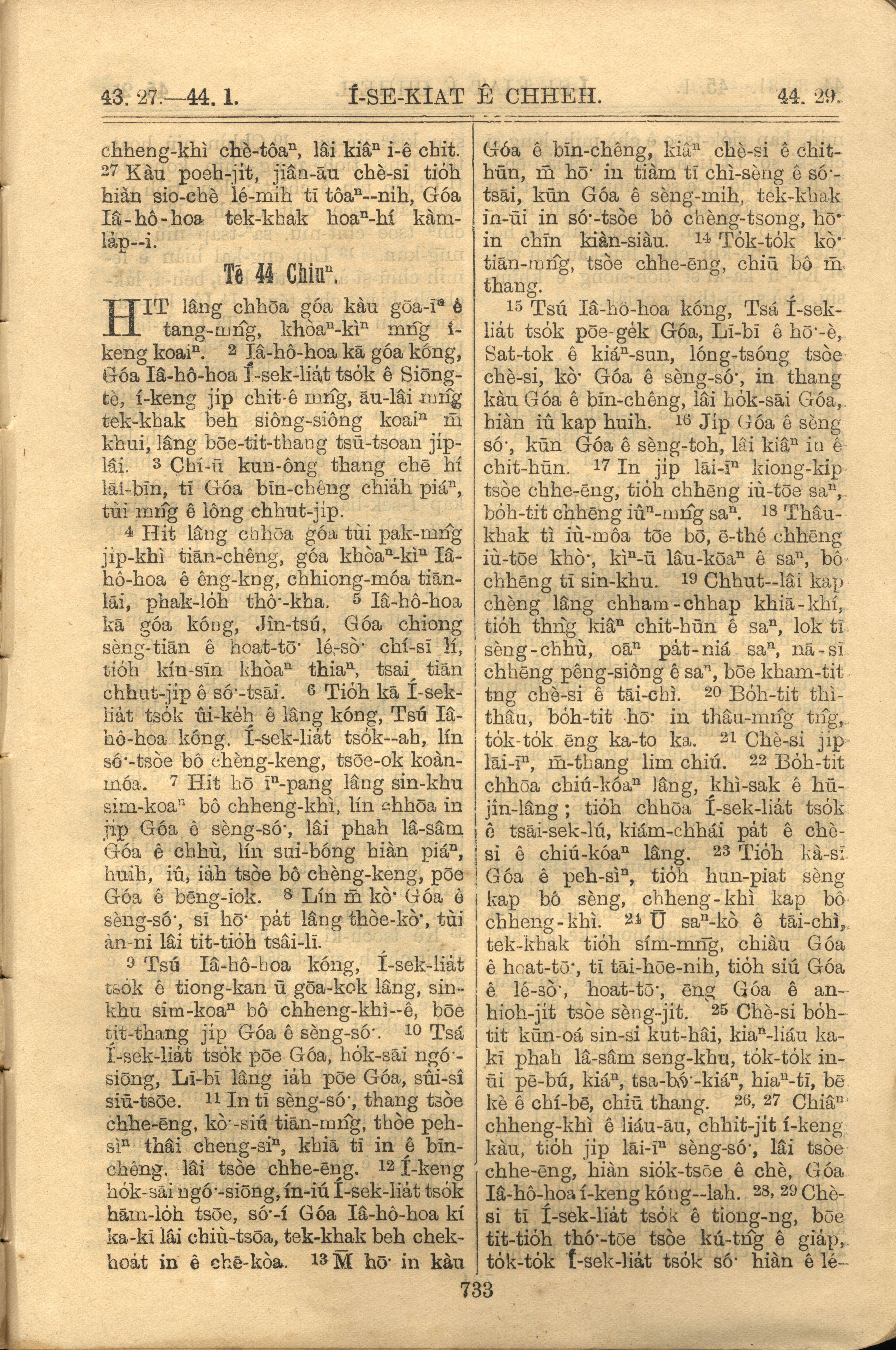 1921年罗马字旧约全书 以西结书 43 章 27 节到 44 章 29 节