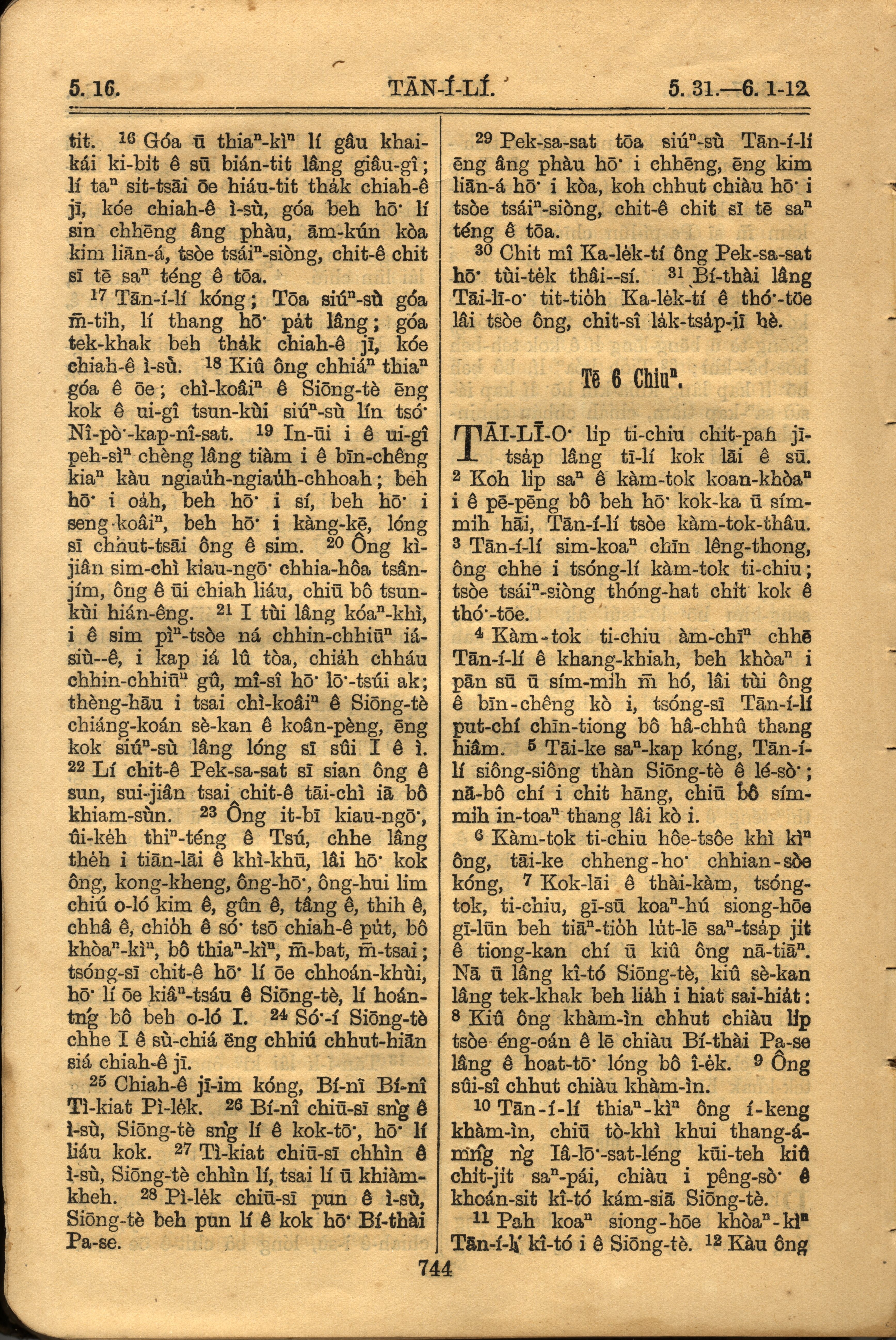 1921年罗马字旧约全书 但以理书 5 章 16 节到 6 章 12 节