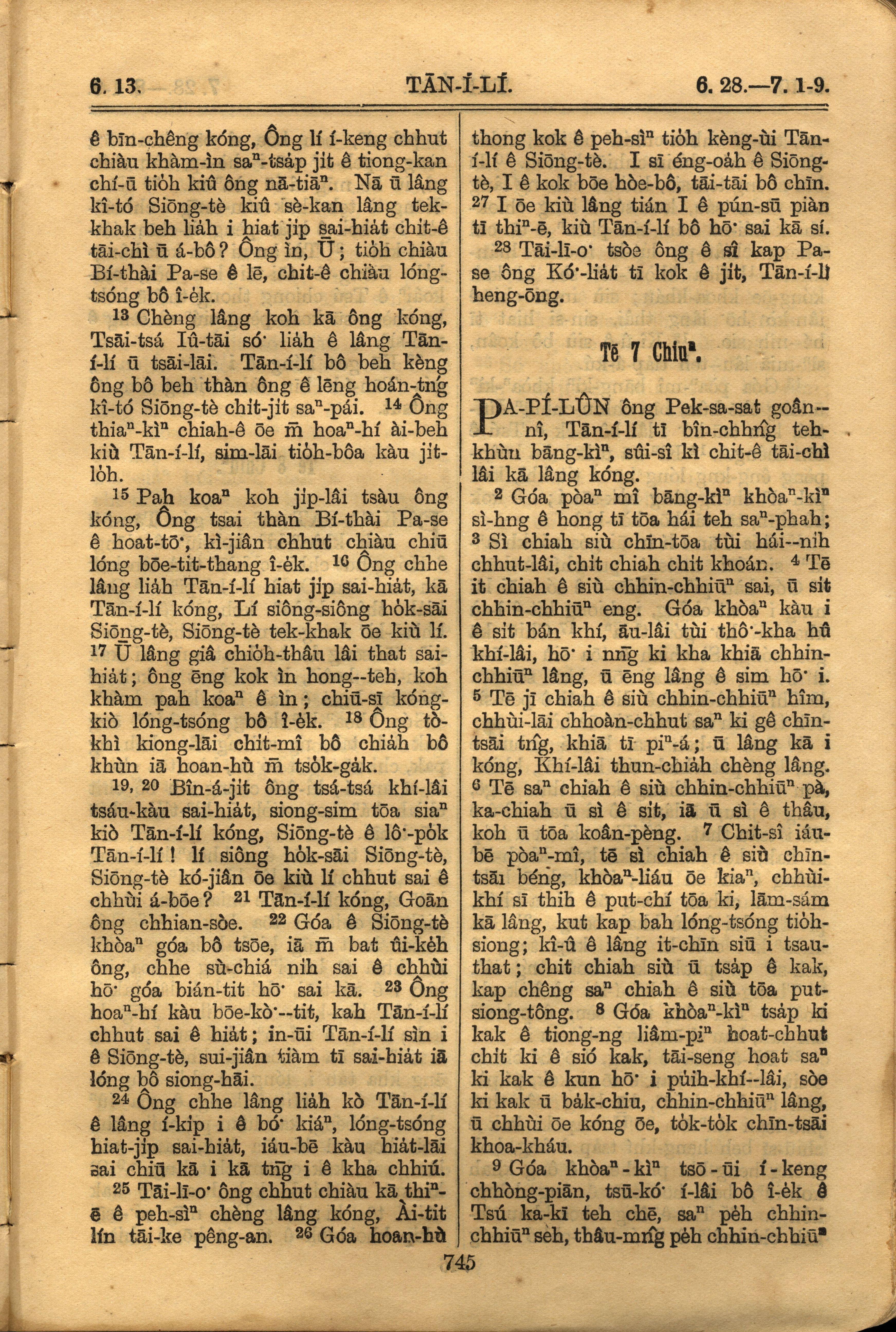 1921年罗马字旧约全书 但以理书 6 章 13 节到 7 章 9 节