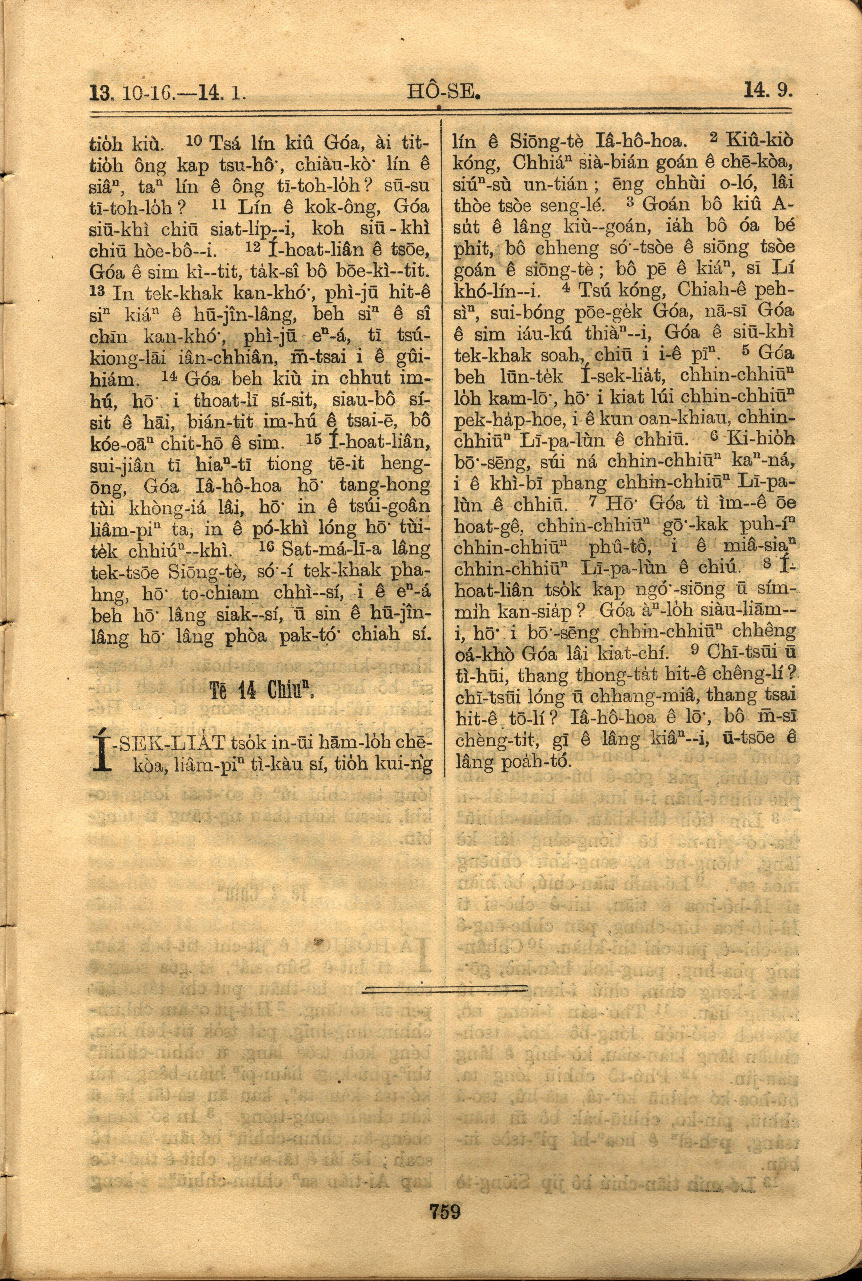 1921年罗马字旧约全书 何西阿书 13 章 10 节到 14 章 9 节