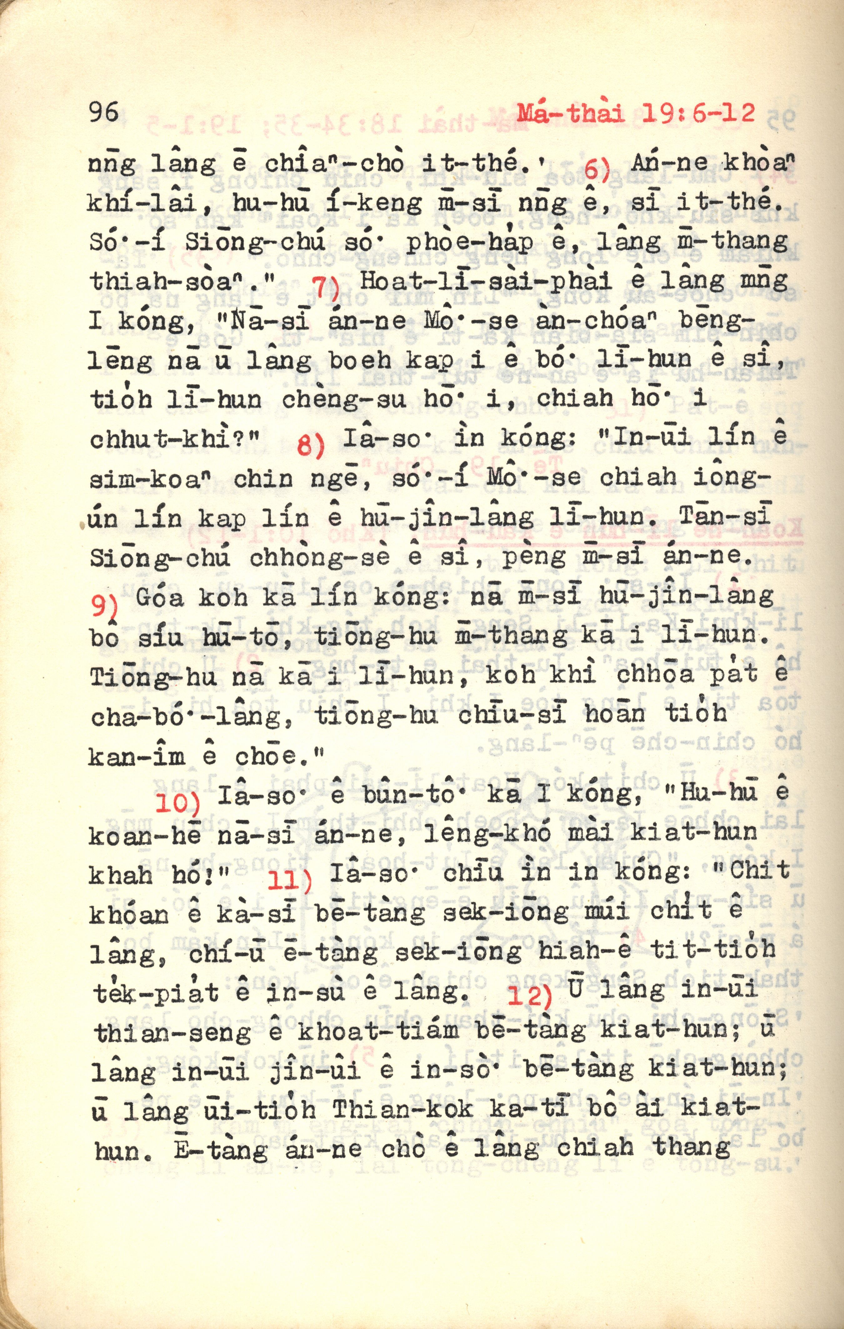 1972年新约红皮圣经 马太福音 19 章 6 节到 19 章 12 节