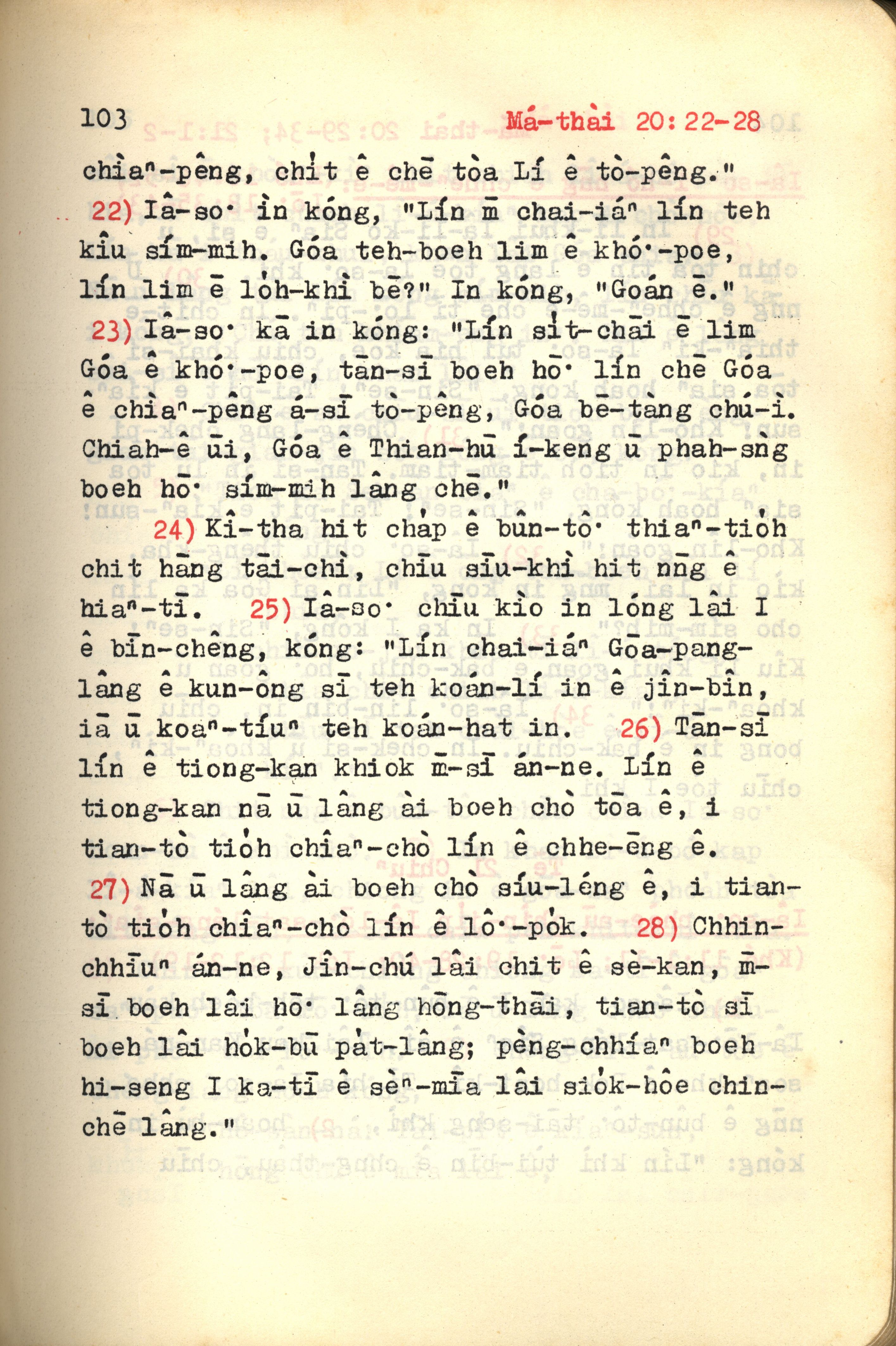 1972年新约红皮圣经 马太福音 20 章 22 节到 20 章 28 节