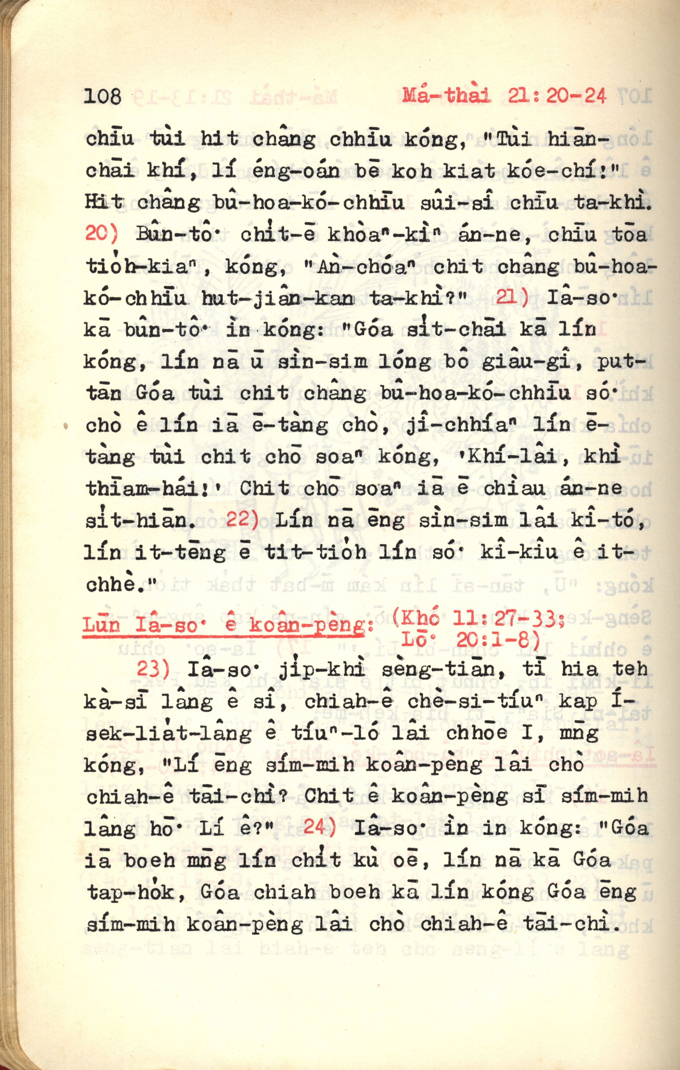 1972年新约红皮圣经 马太福音 21 章 20 节到 21 章 24 节