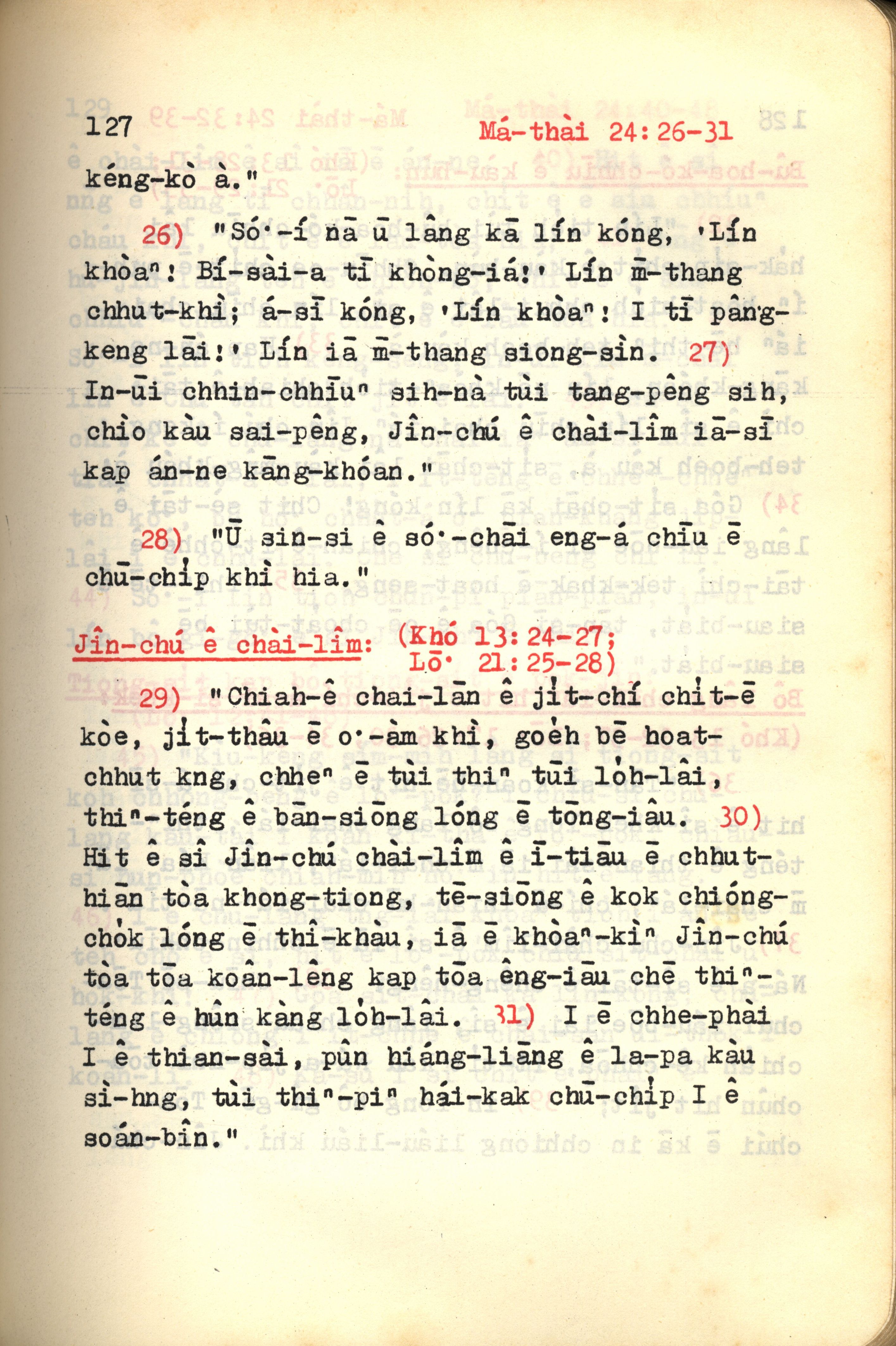1972年新约红皮圣经 马太福音 24 章 26 节到 24 章 31 节