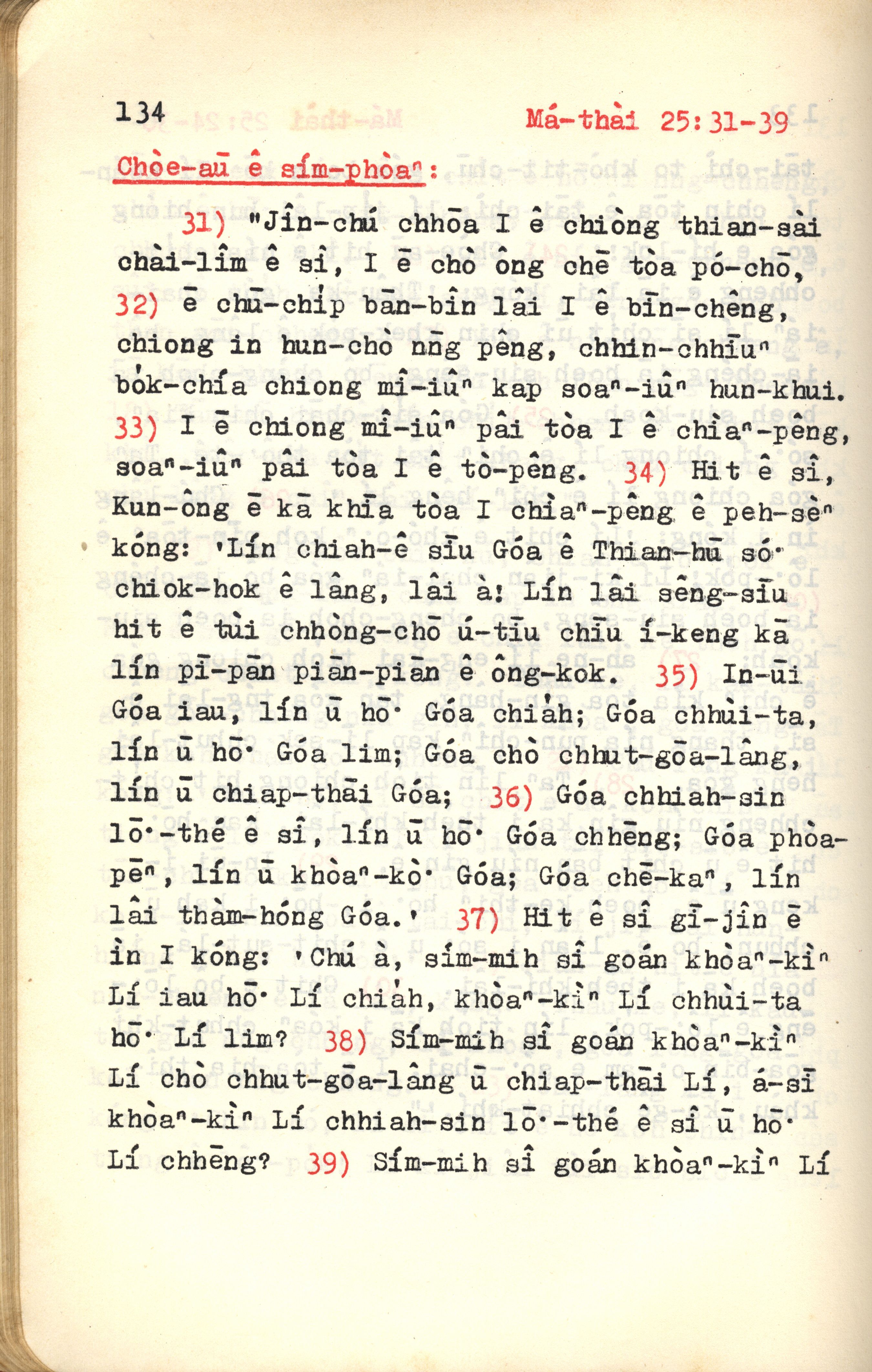 1972年新约红皮圣经 马太福音 25 章 31 节到 25 章 39 节