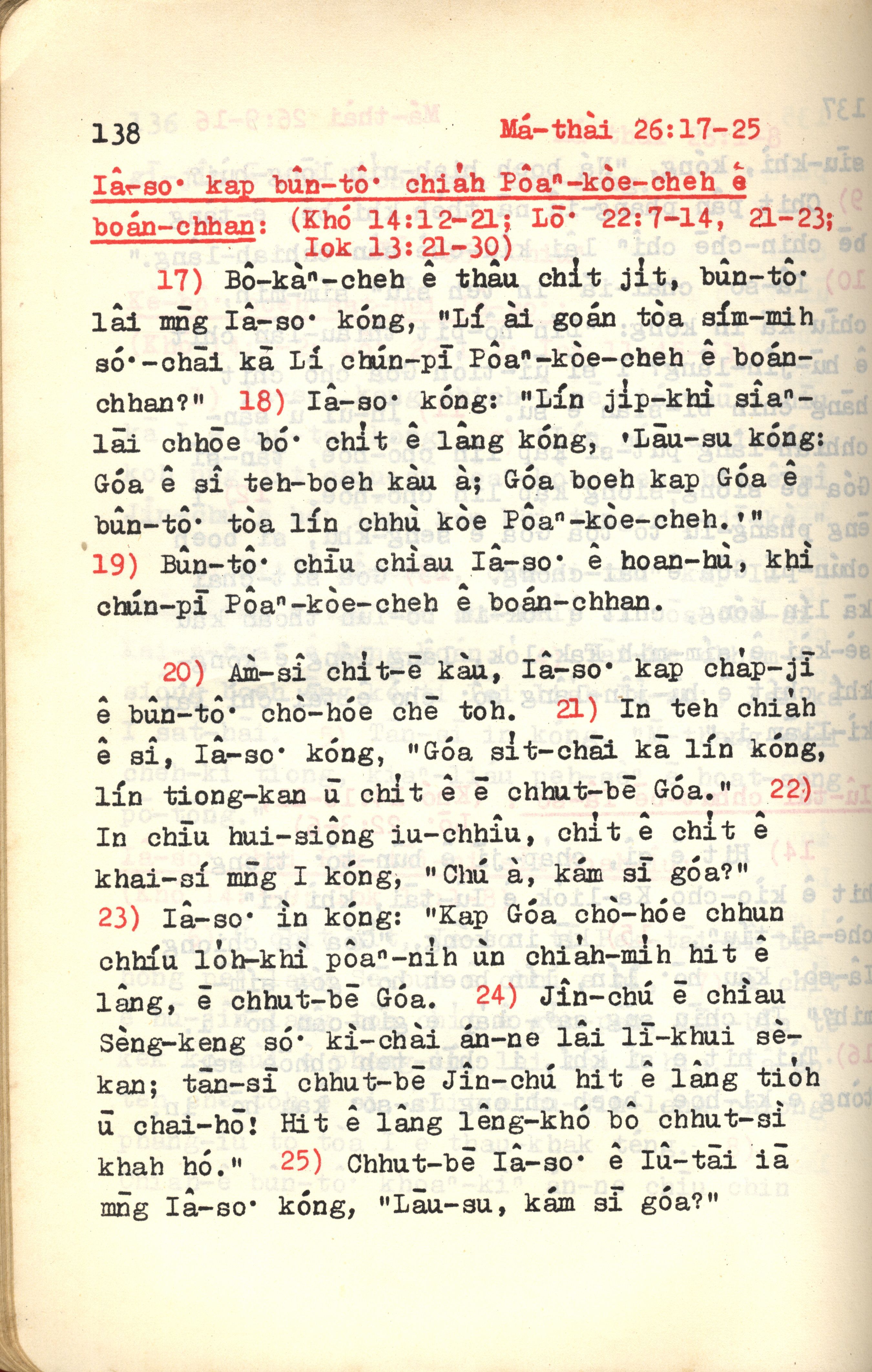1972年新约红皮圣经 马太福音 26 章 17 节到 26 章 25 节