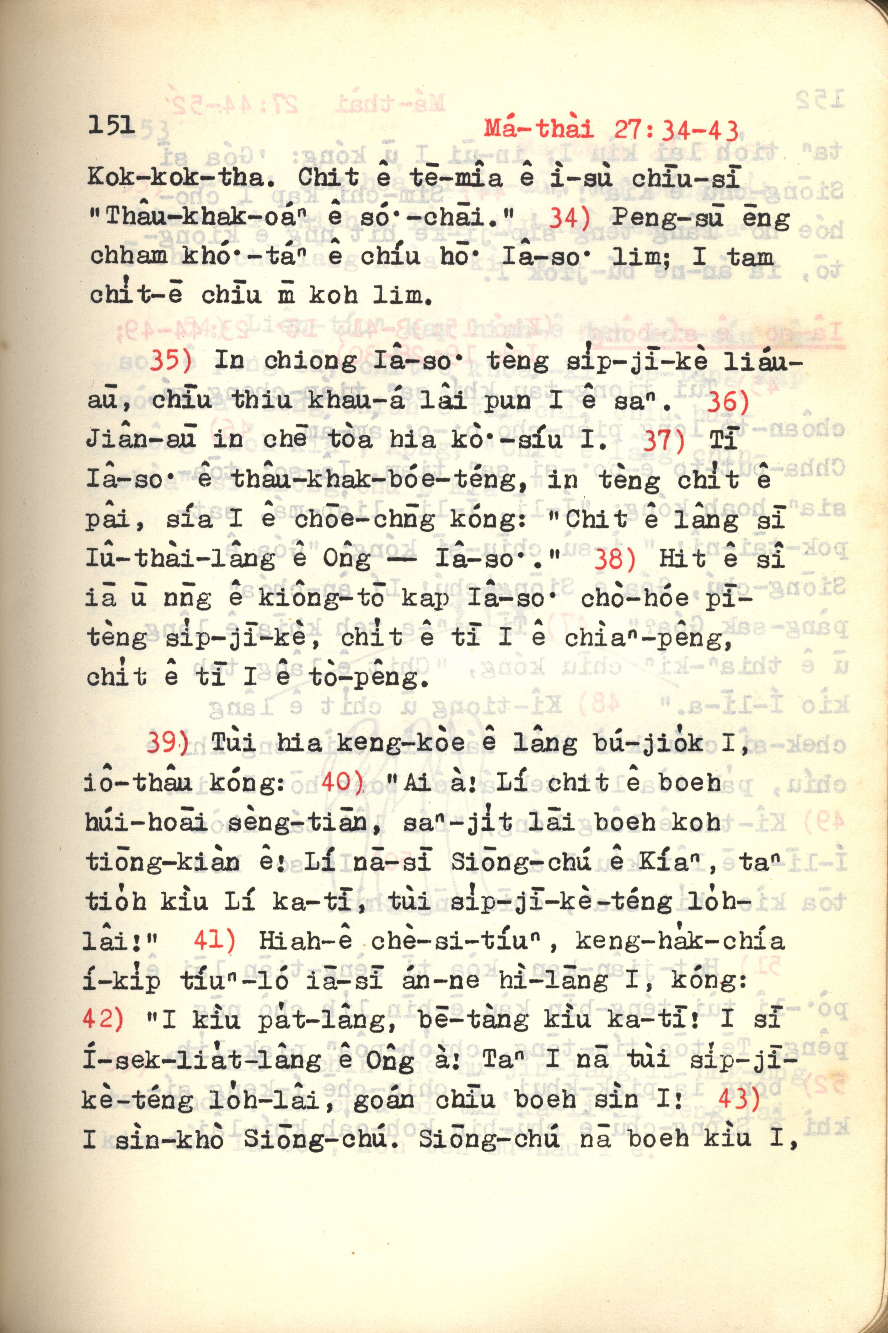 1972年新约红皮圣经 马太福音 27 章 34 节到 27 章 43 节