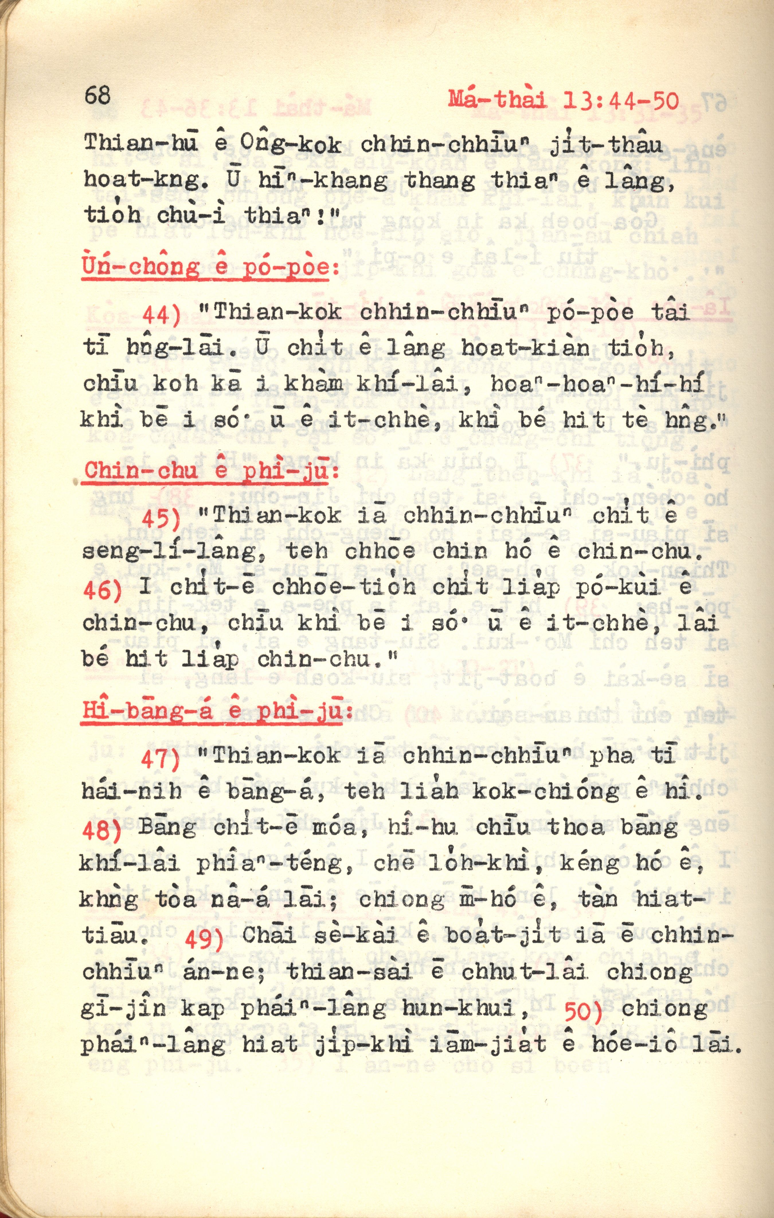 1972年新约红皮圣经 马太福音 13 章 44 节到 13 章 50 节