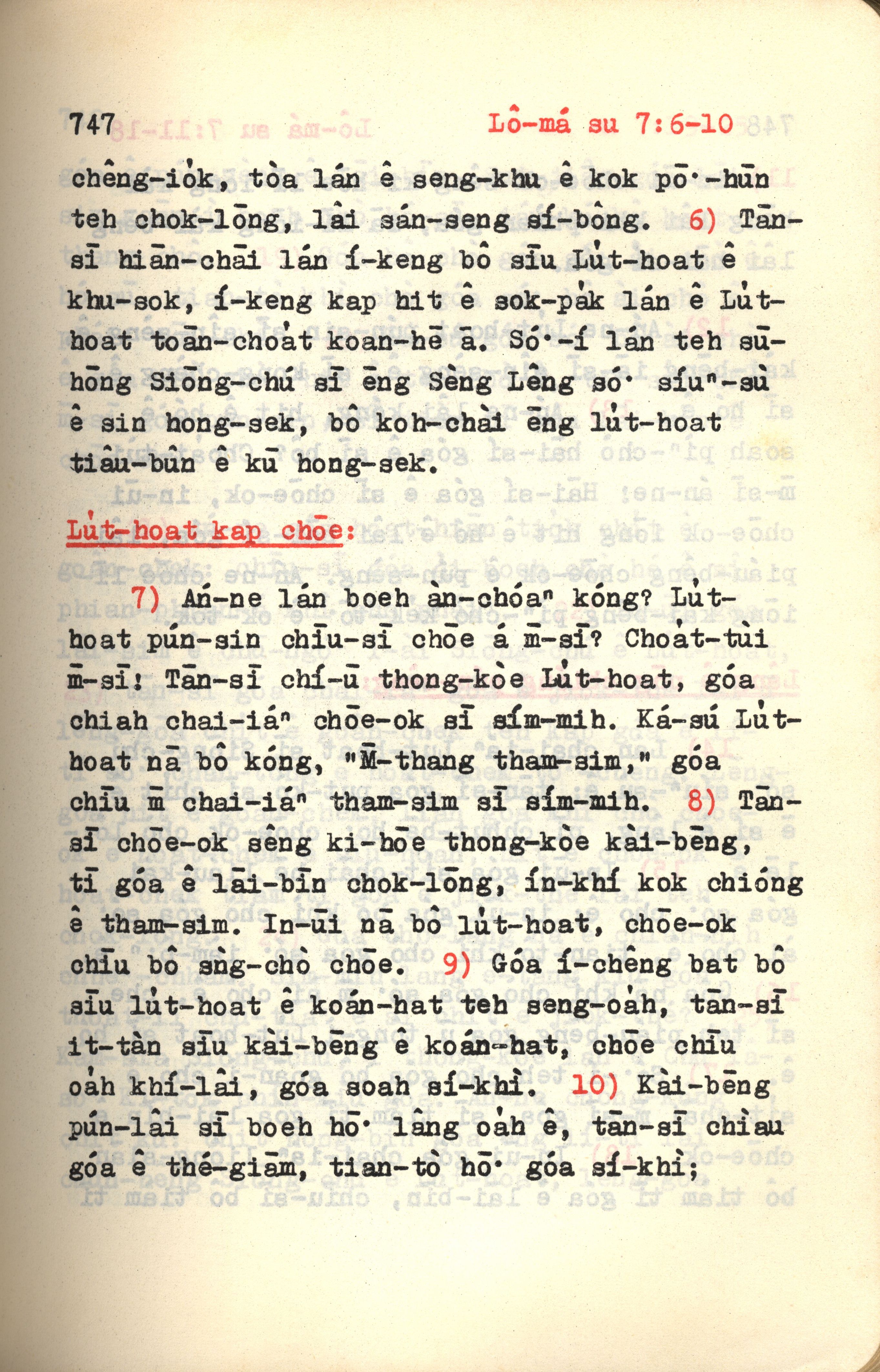 1972年新约红皮圣经 罗马书 7 章 6 节到 7 章 10 节