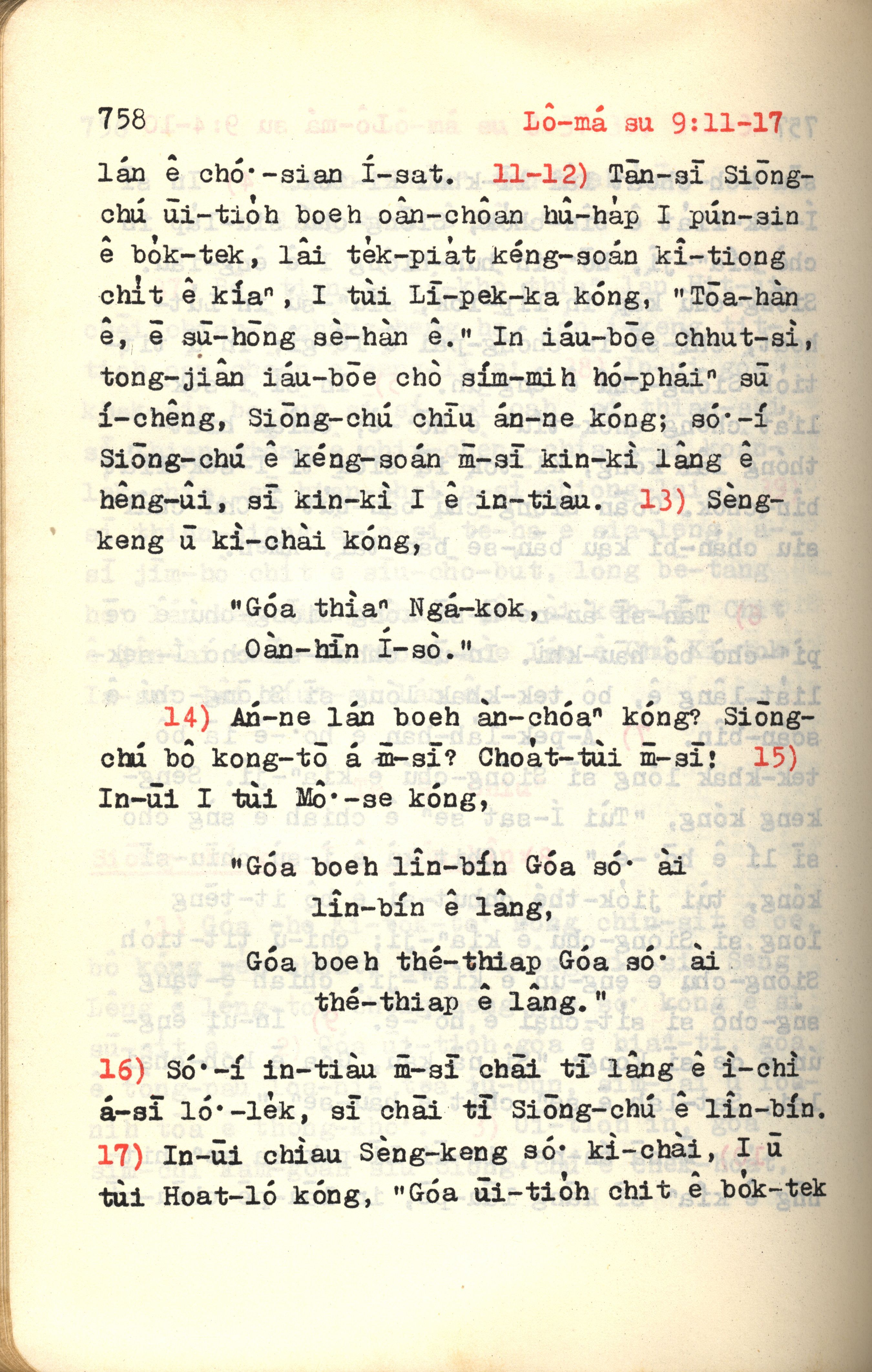 1972年新约红皮圣经 罗马书 9 章 11 节到 9 章 17 节