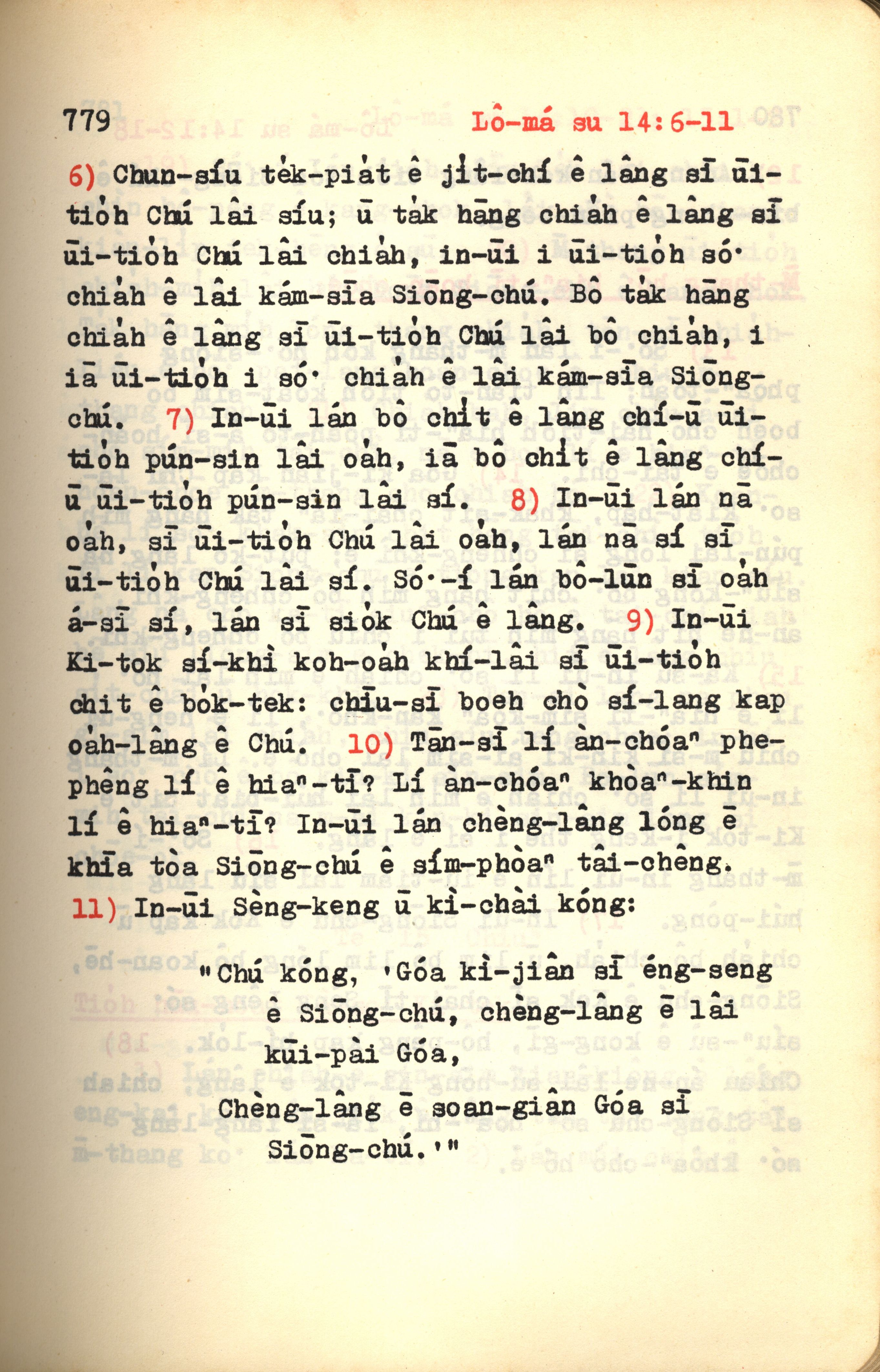 1972年新约红皮圣经 罗马书 14 章 6 节到 14 章 11 节