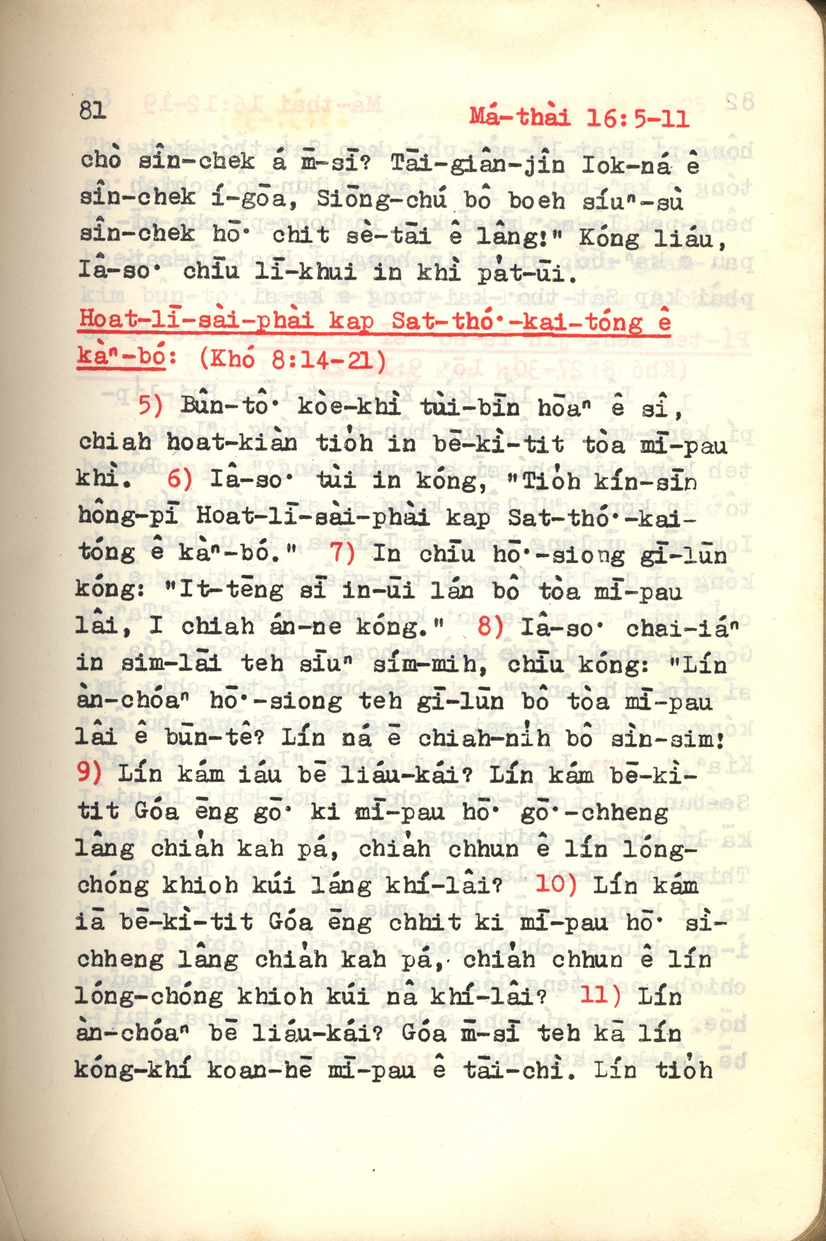 1972年新约红皮圣经 马太福音 16 章 5 节到 16 章 11 节