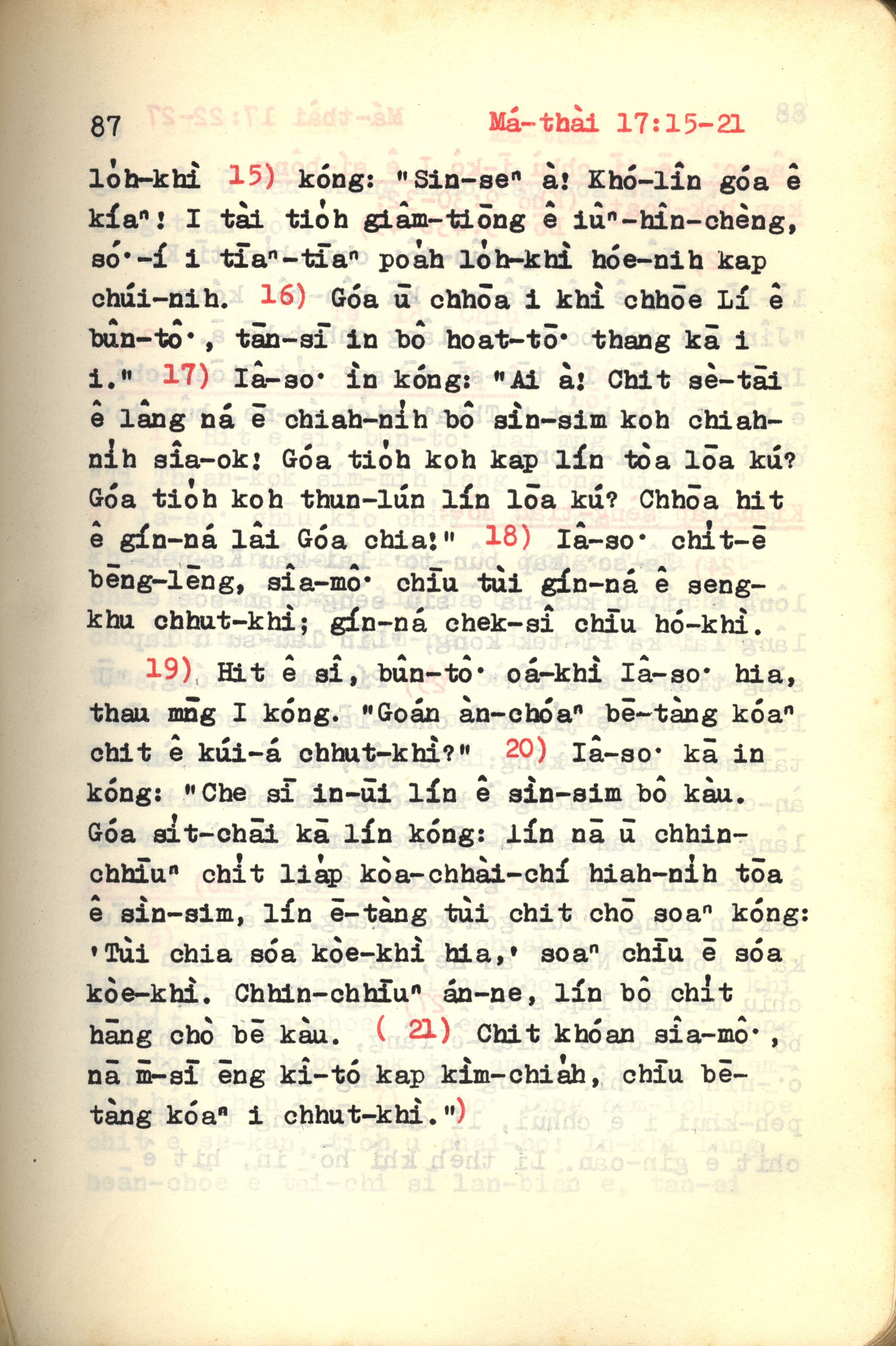 1972年新约红皮圣经 马太福音 17 章 15 节到 17 章 21 节