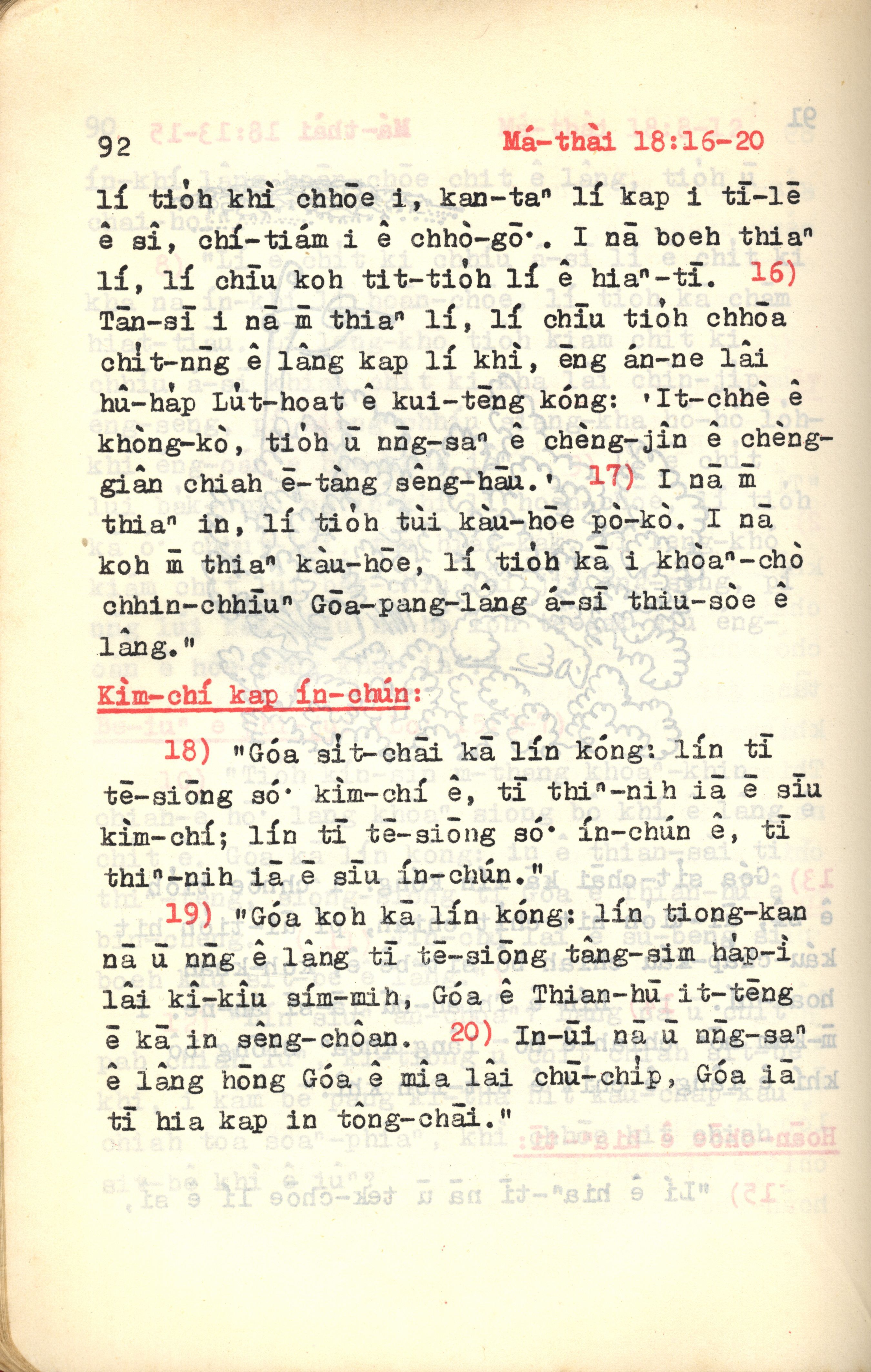 1972年新约红皮圣经 马太福音 18 章 16 节到 18 章 20 节