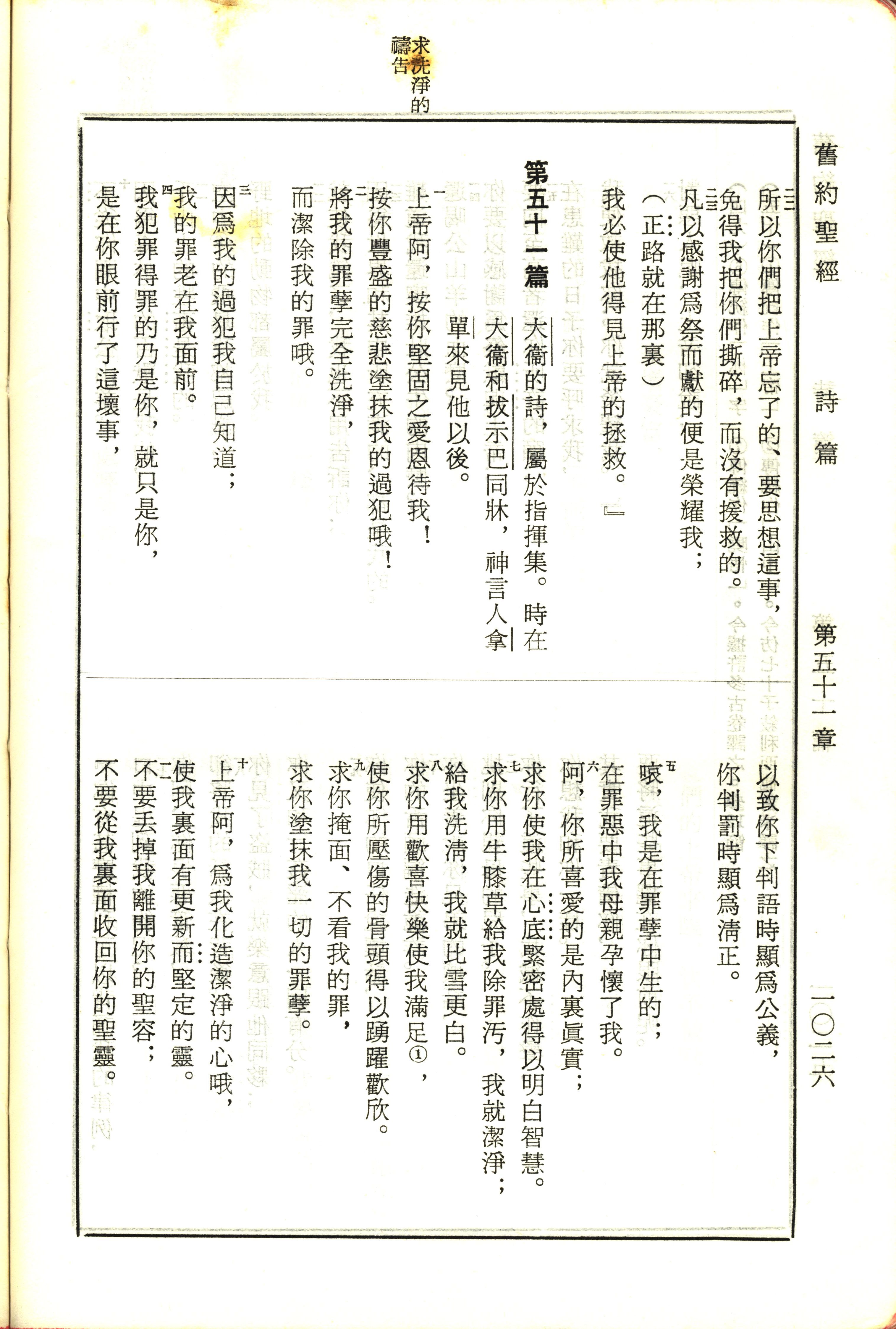 1970年新旧约全书(吕振中译本) 诗篇 50 章 22 节到 51 章 11 节