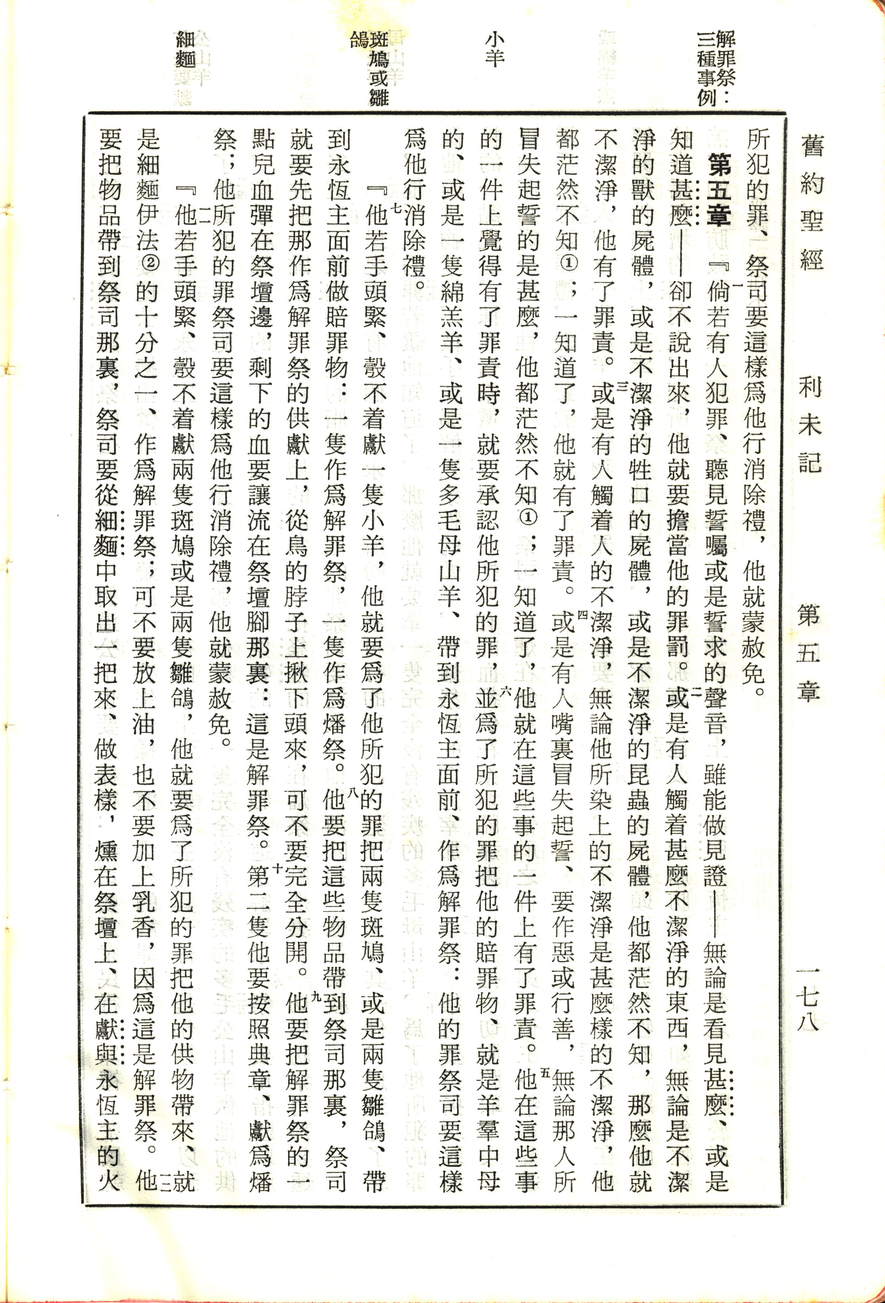 1970年新旧约全书(吕振中译本) 利未记 5 章 1 节到 5 章 12 节