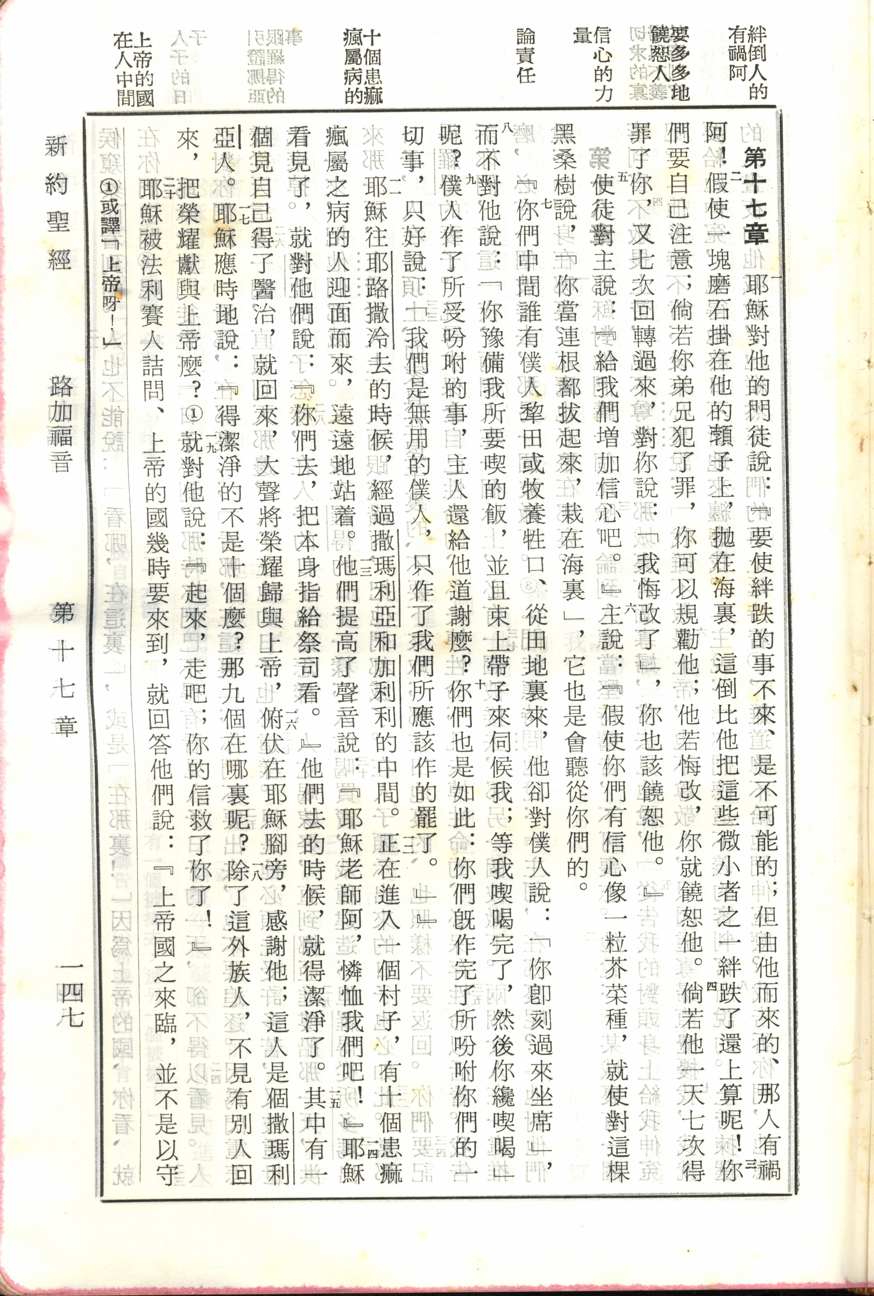 1970年新旧约全书(吕振中译本) 路加福音 17 章 1 节到 17 章 20 节