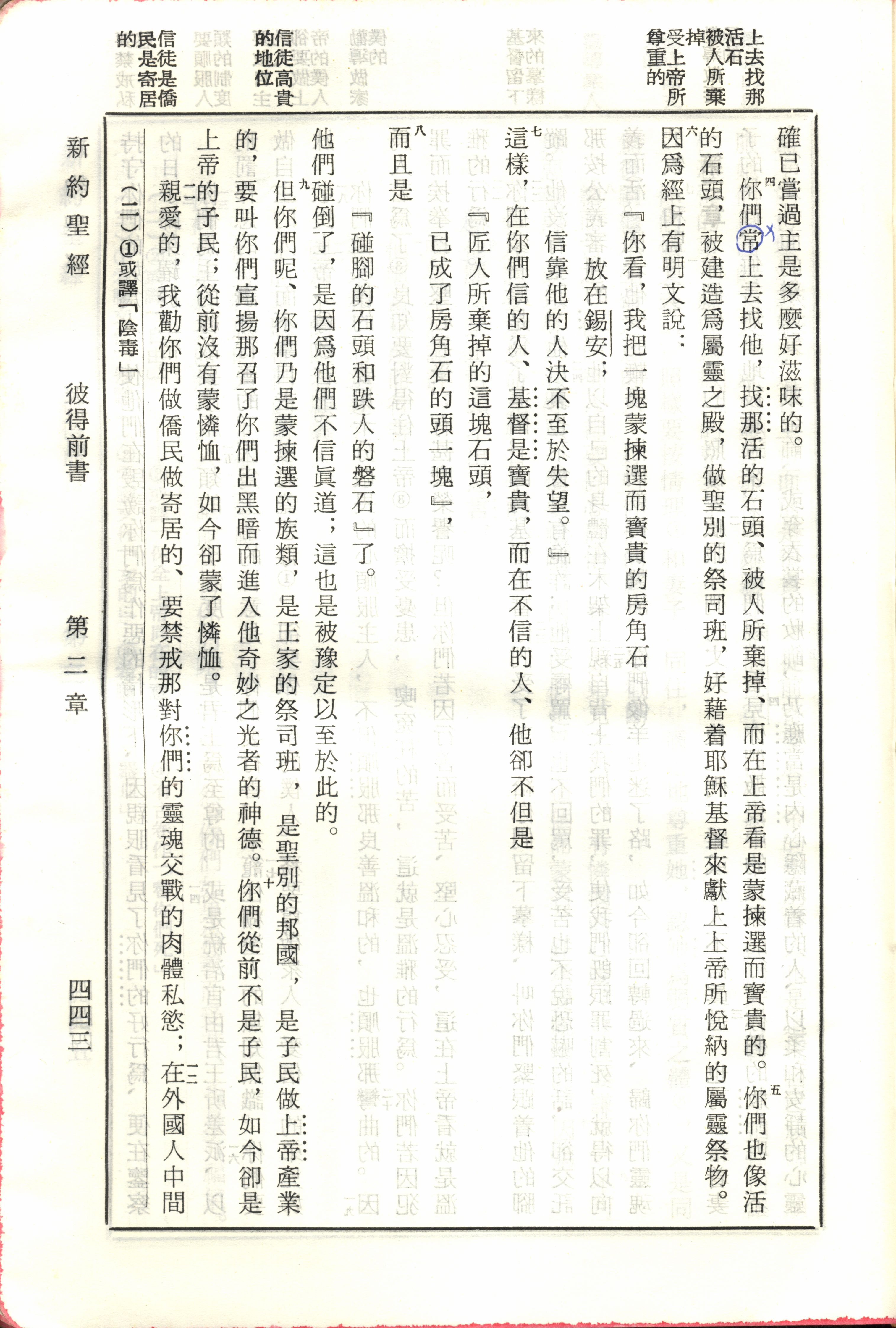 1970年新旧约全书(吕振中译本) 彼得前书 2 章 4 节到 2 章 12 节