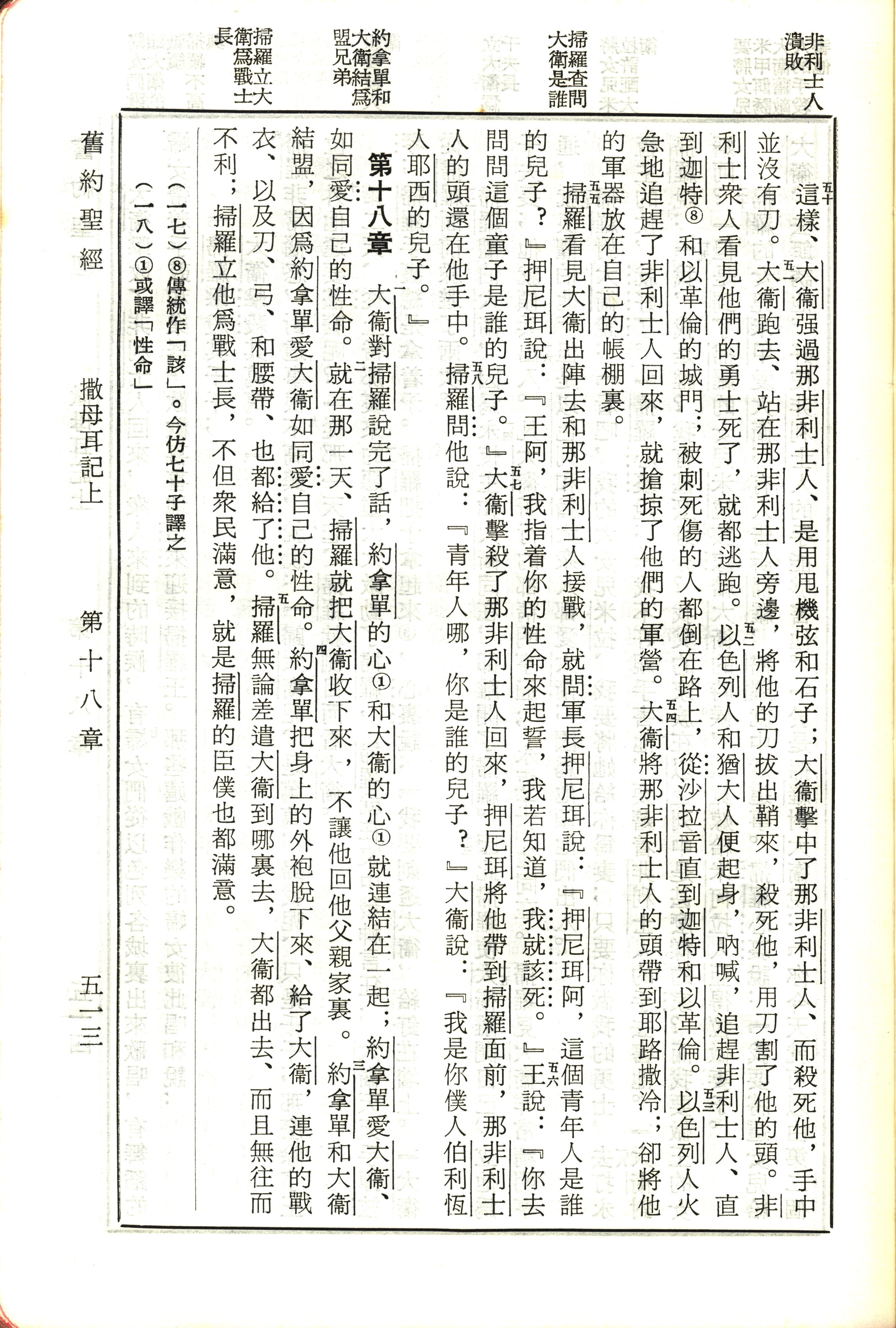 1970年新旧约全书(吕振中译本) 撒母耳记上 17 章 50 节到 18 章 5 节