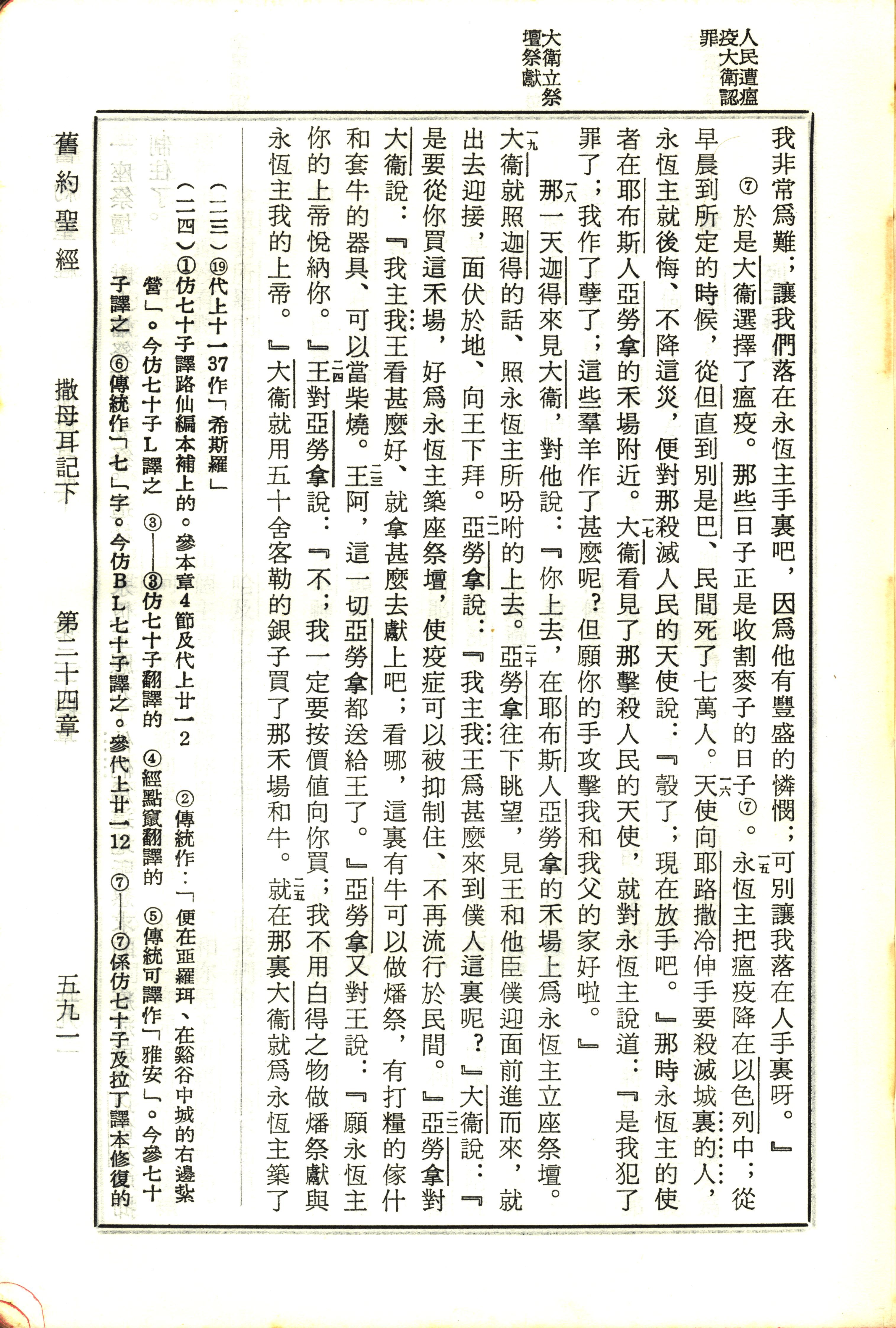 1970年新旧约全书(吕振中译本) 撒母耳记下 24 章 15 节到 24 章 25 节