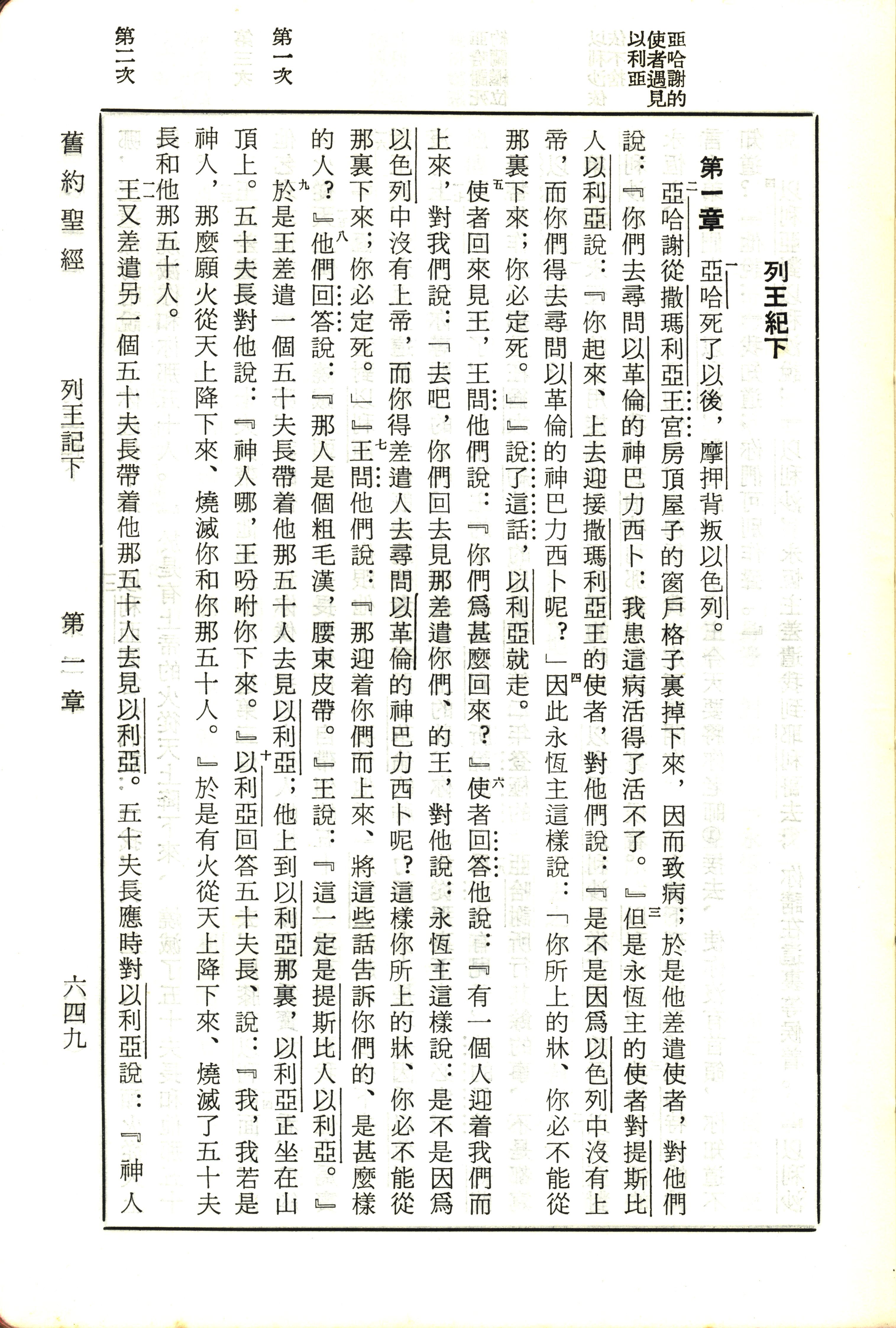 1970年新旧约全书(吕振中译本) 列王纪下 1 章 1 节到 1 章 11 节