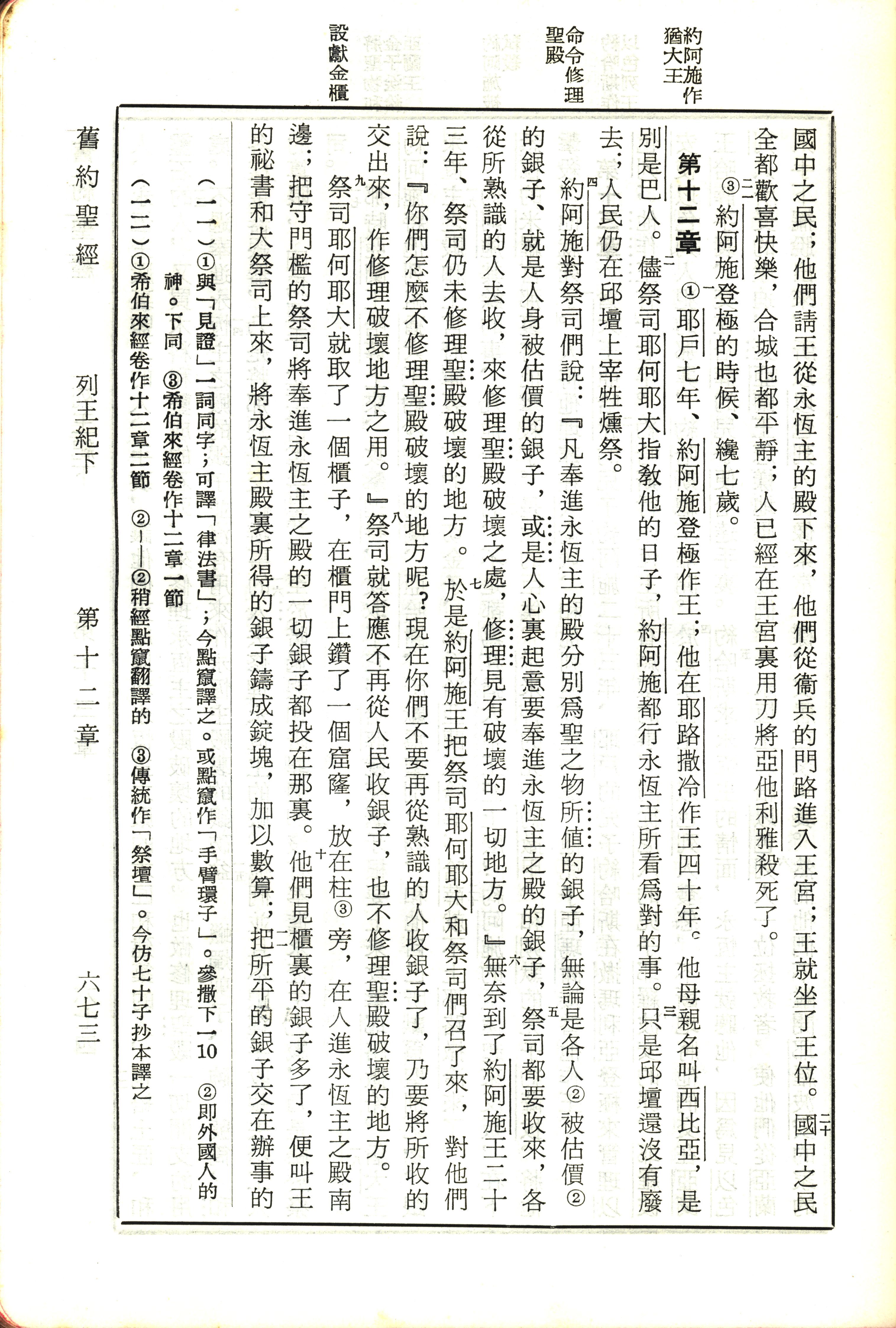 1970年新旧约全书(吕振中译本) 列王纪下 11 章 20 节到 12 章 11 节