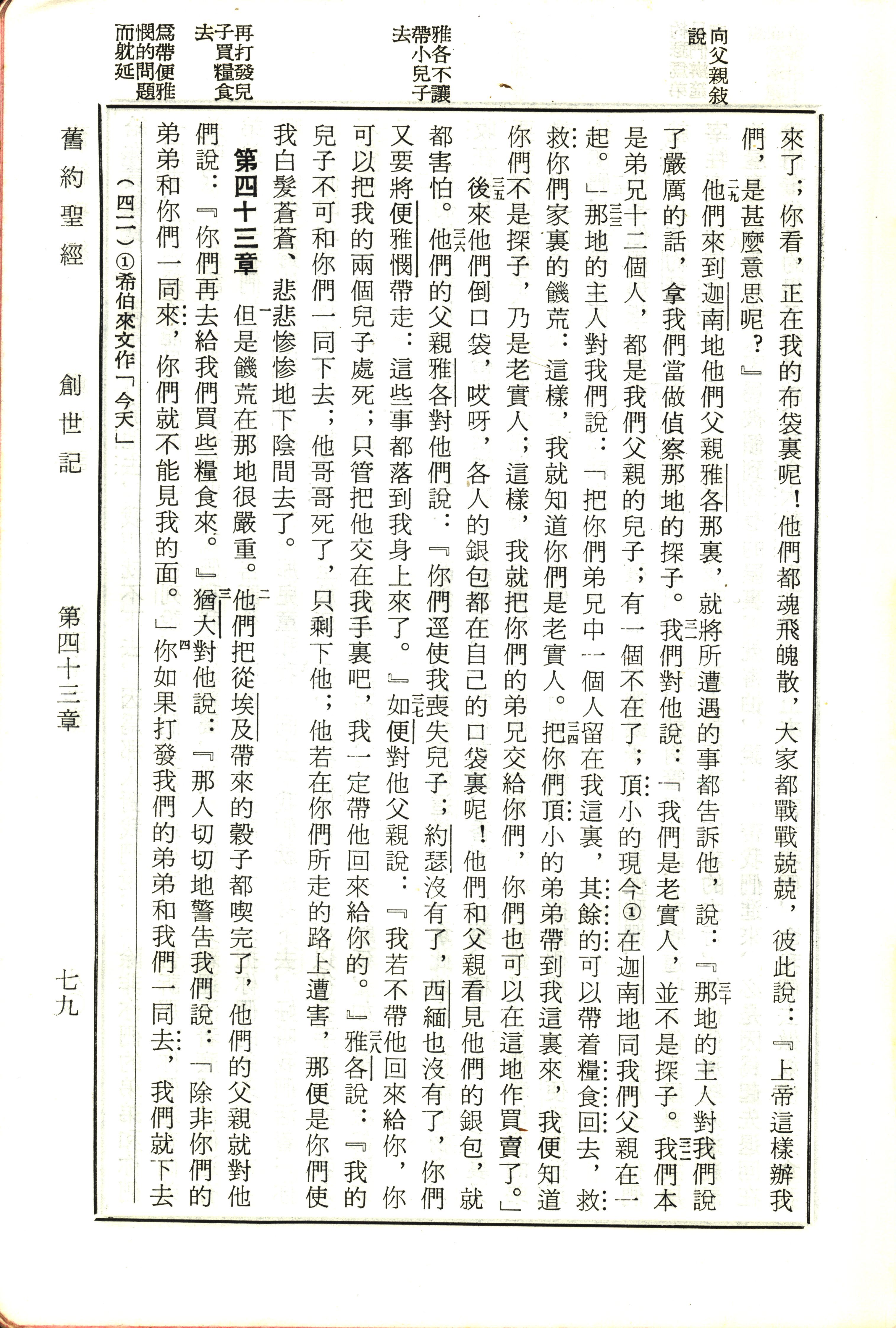 1970年新旧约全书(吕振中译本) 创世记 42 章 29 节到 43 章 4 节