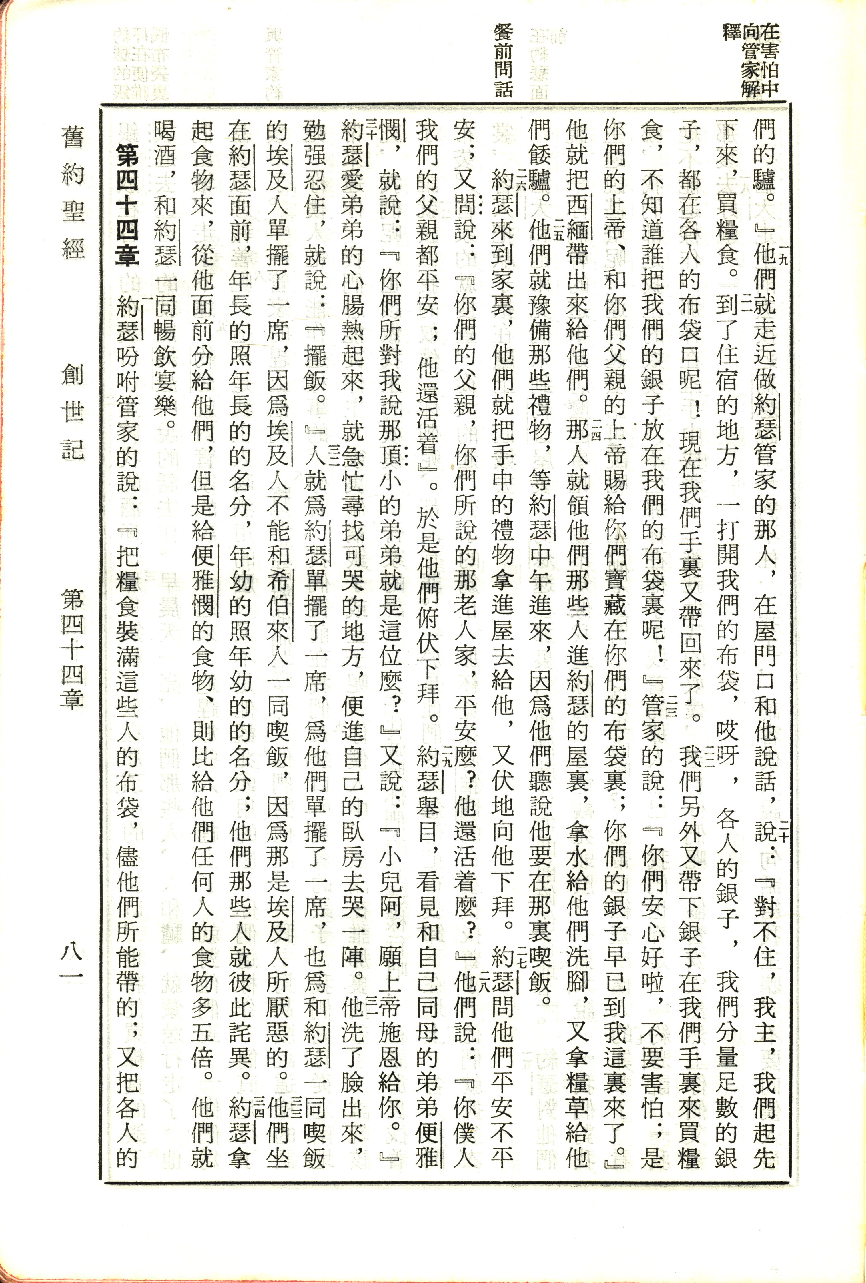 1970年新旧约全书(吕振中译本) 创世记 43 章 19 节到 44 章 1 节