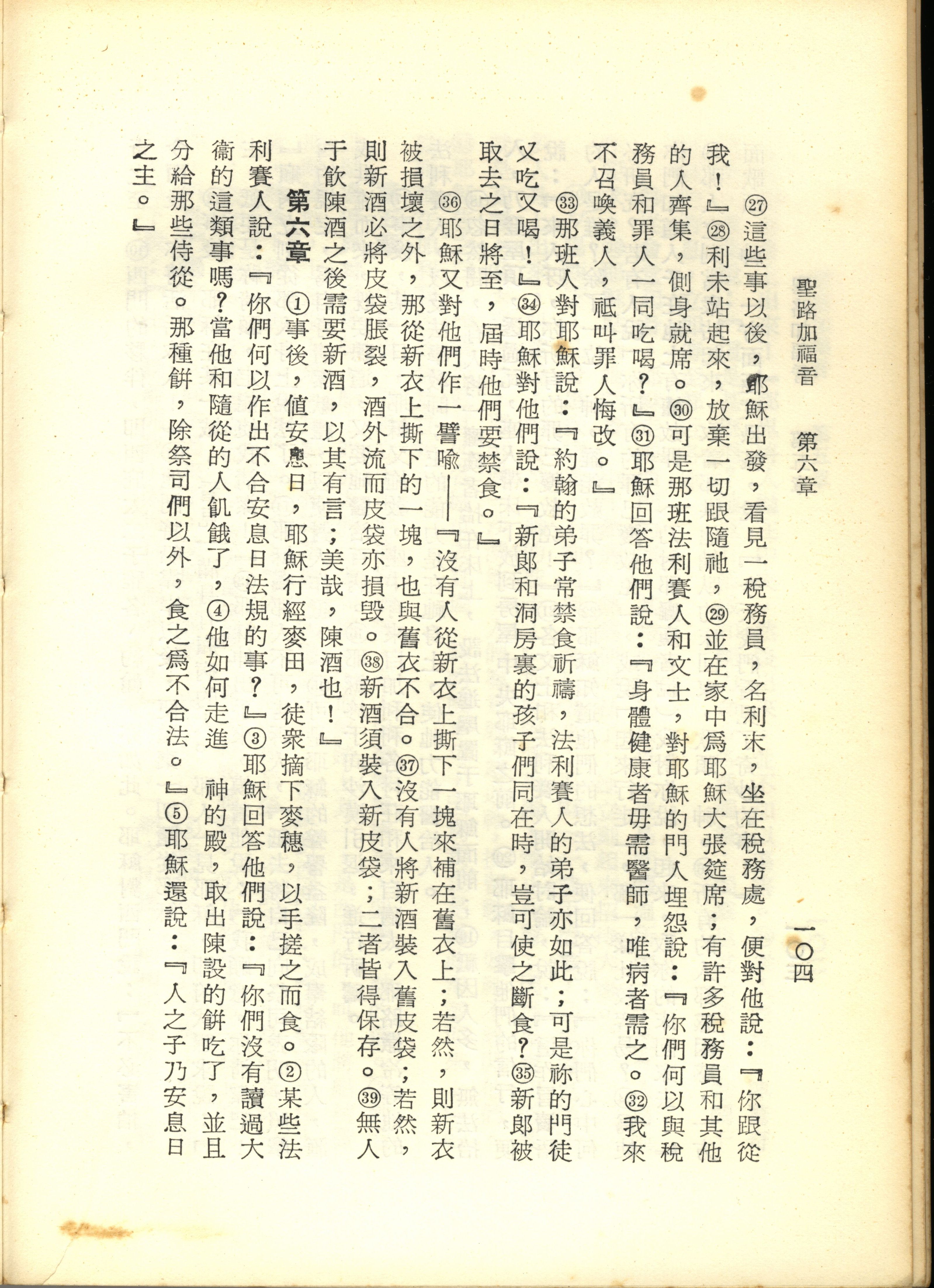 1967年新译新约全集 路加福音 5 章 27 节到 6 章 5 节