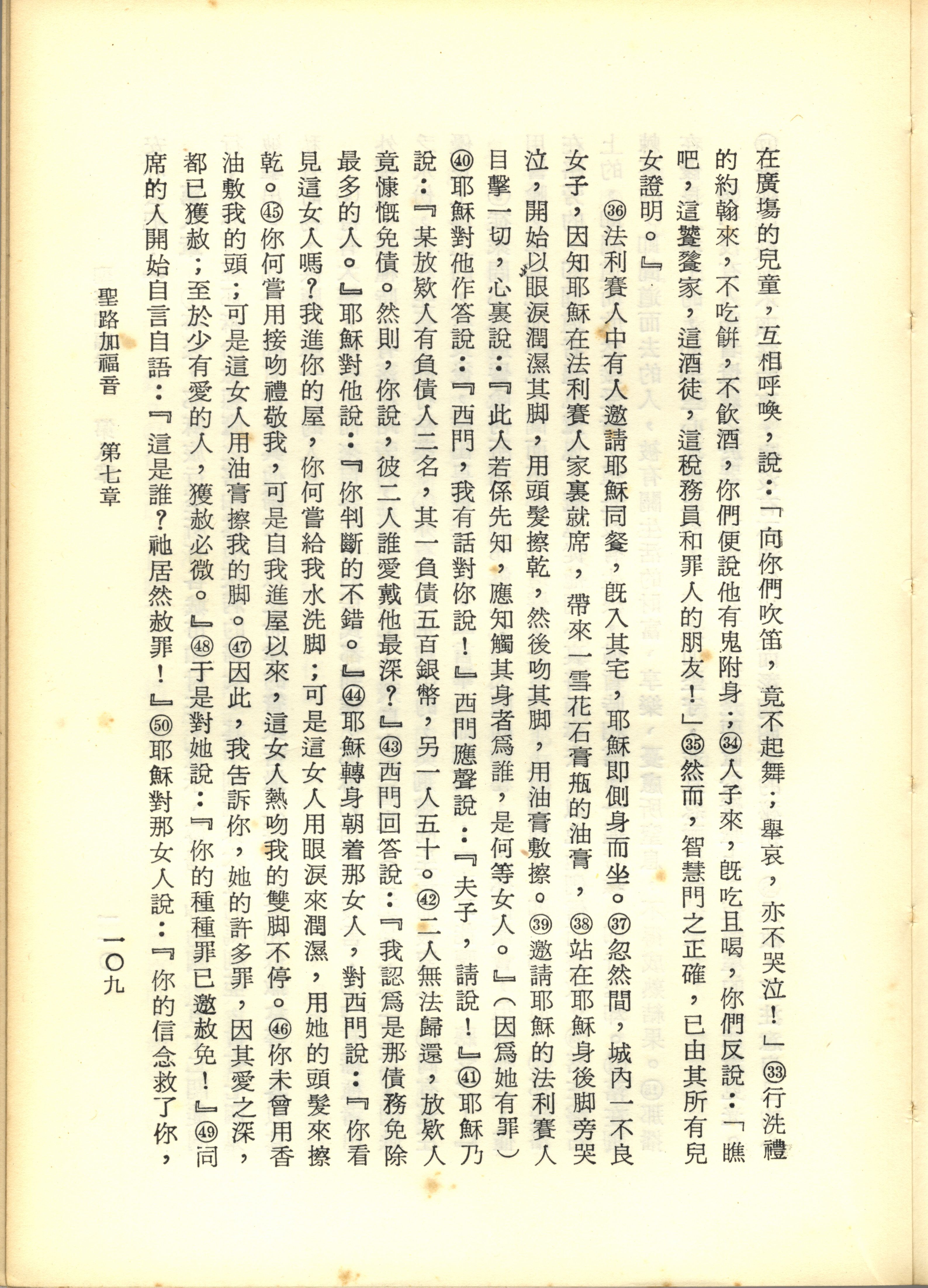 1967年新译新约全集 路加福音 7 章 33 节到 7 章 50 节