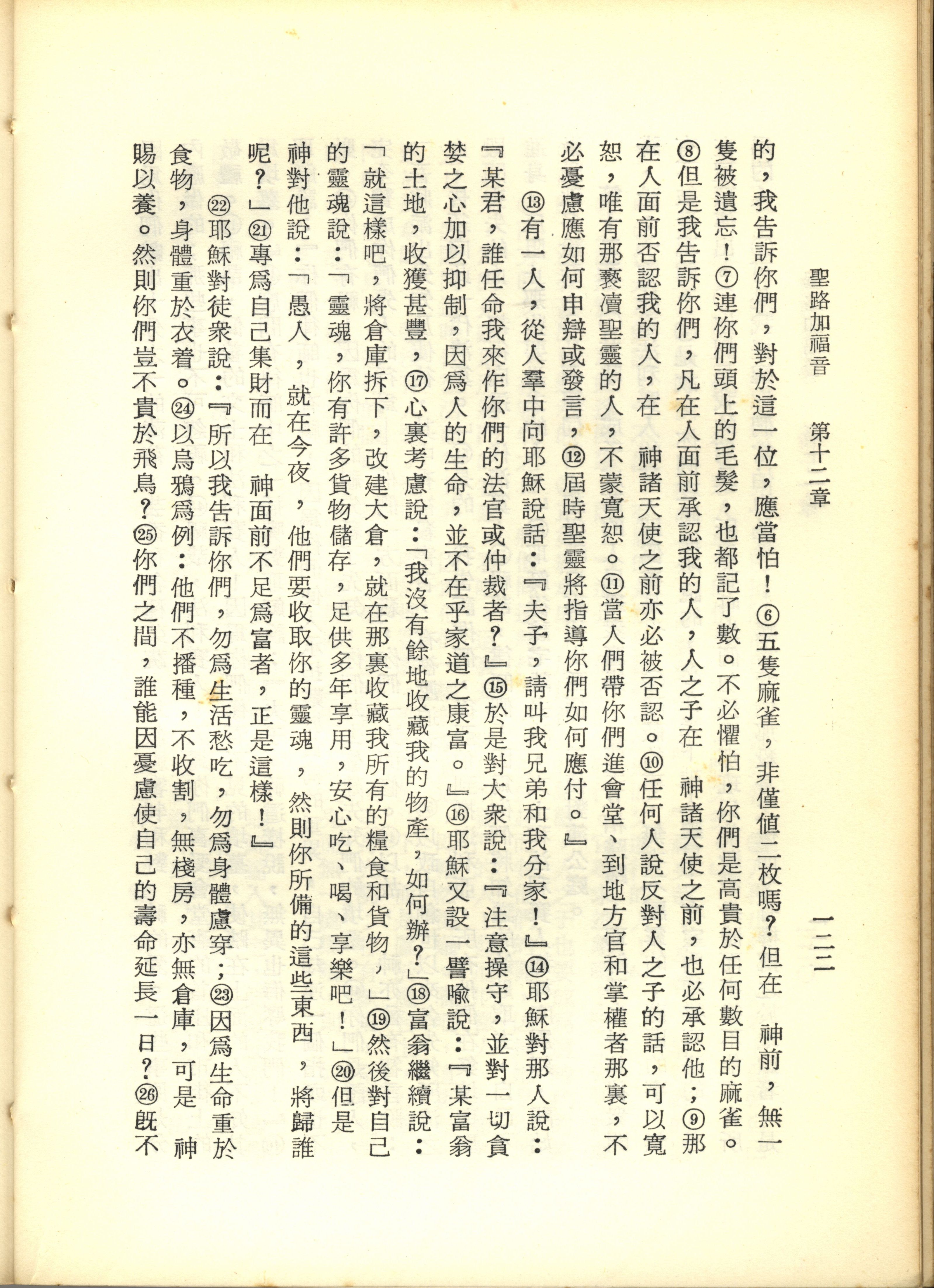 1967年新译新约全集 路加福音 12 章 6 节到 12 章 26 节