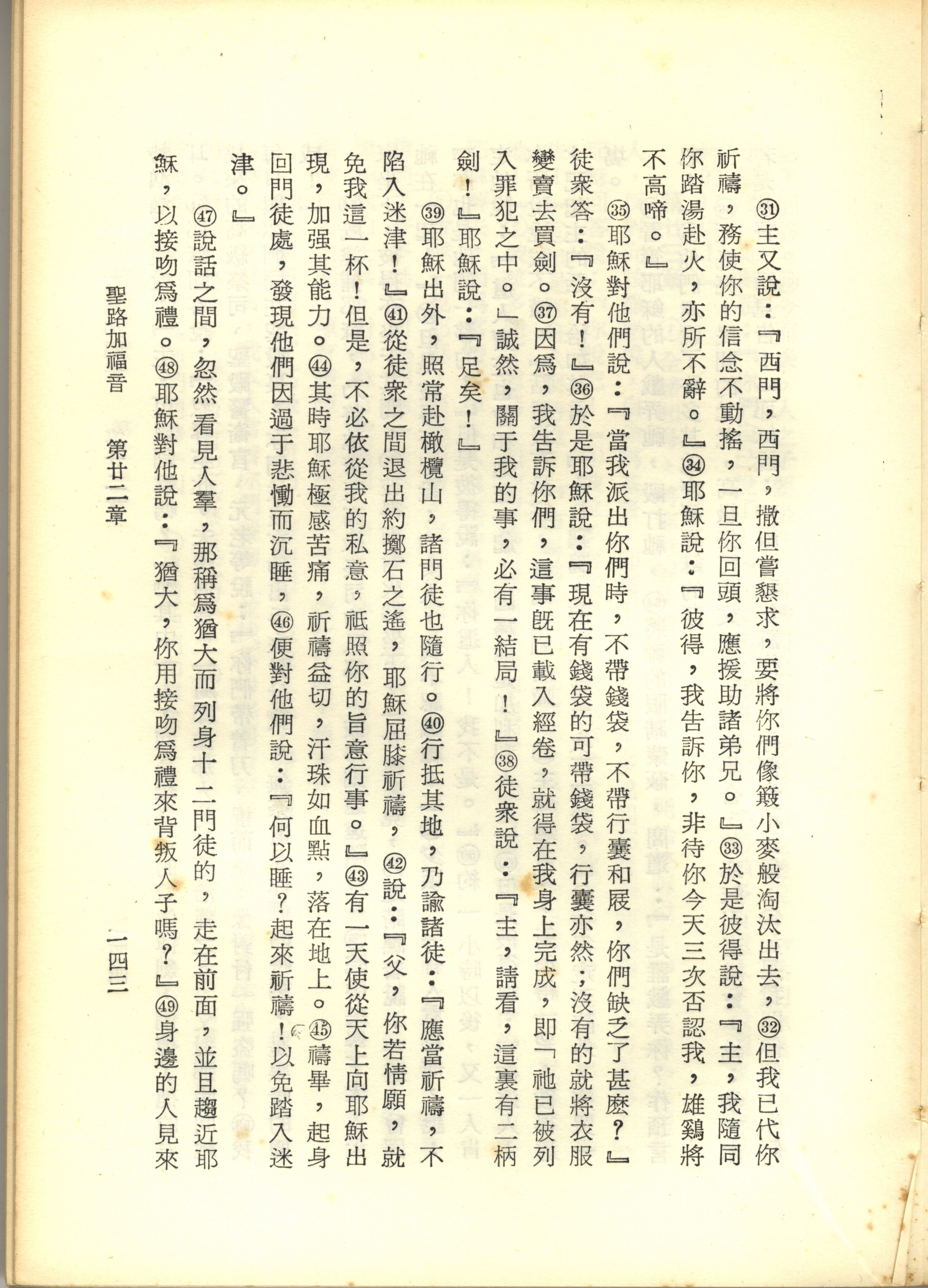 1967年新译新约全集 路加福音 22 章 31 节到 22 章 49 节