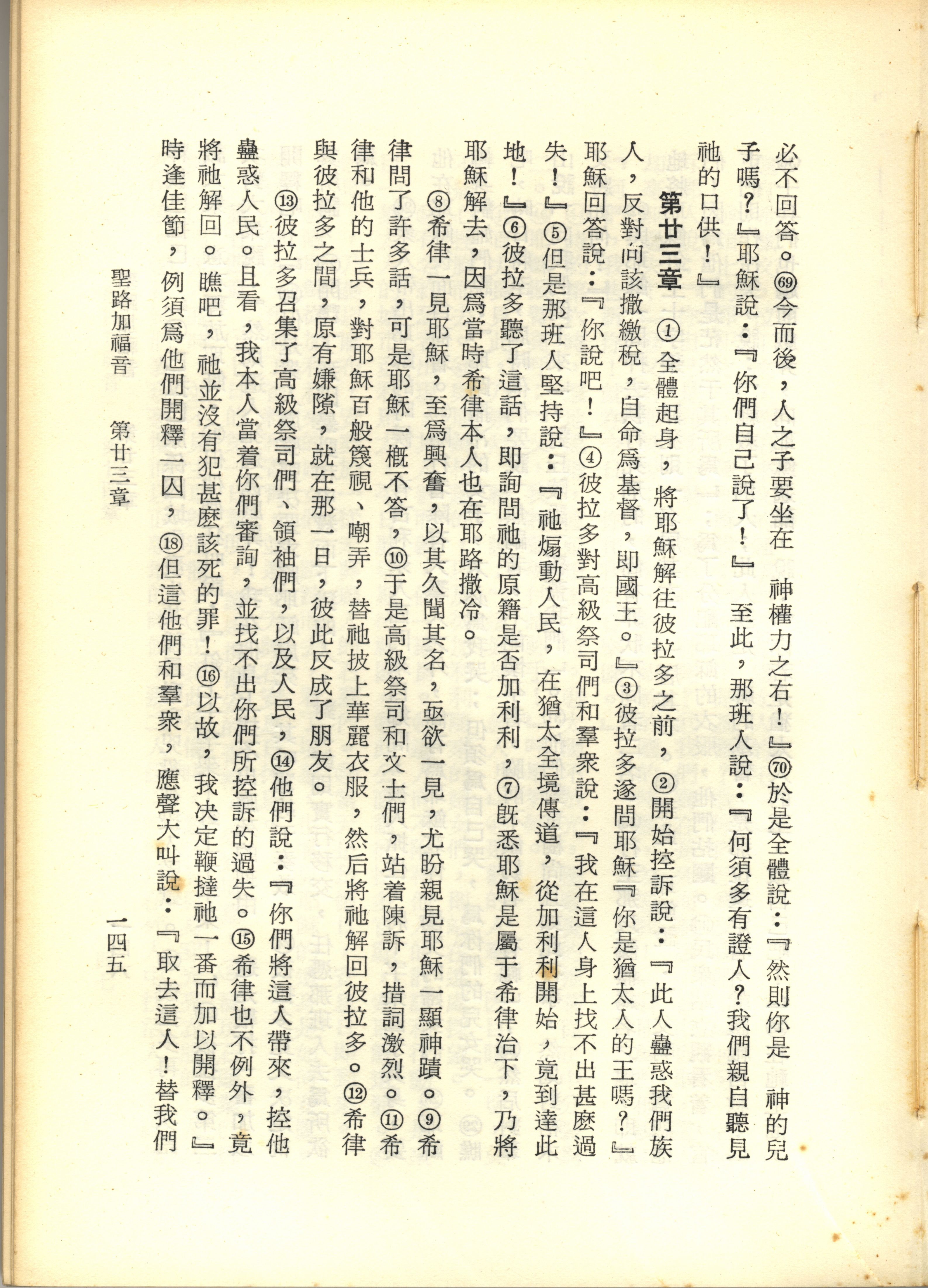1967年新译新约全集 路加福音 22 章 69 节到 23 章 18 节