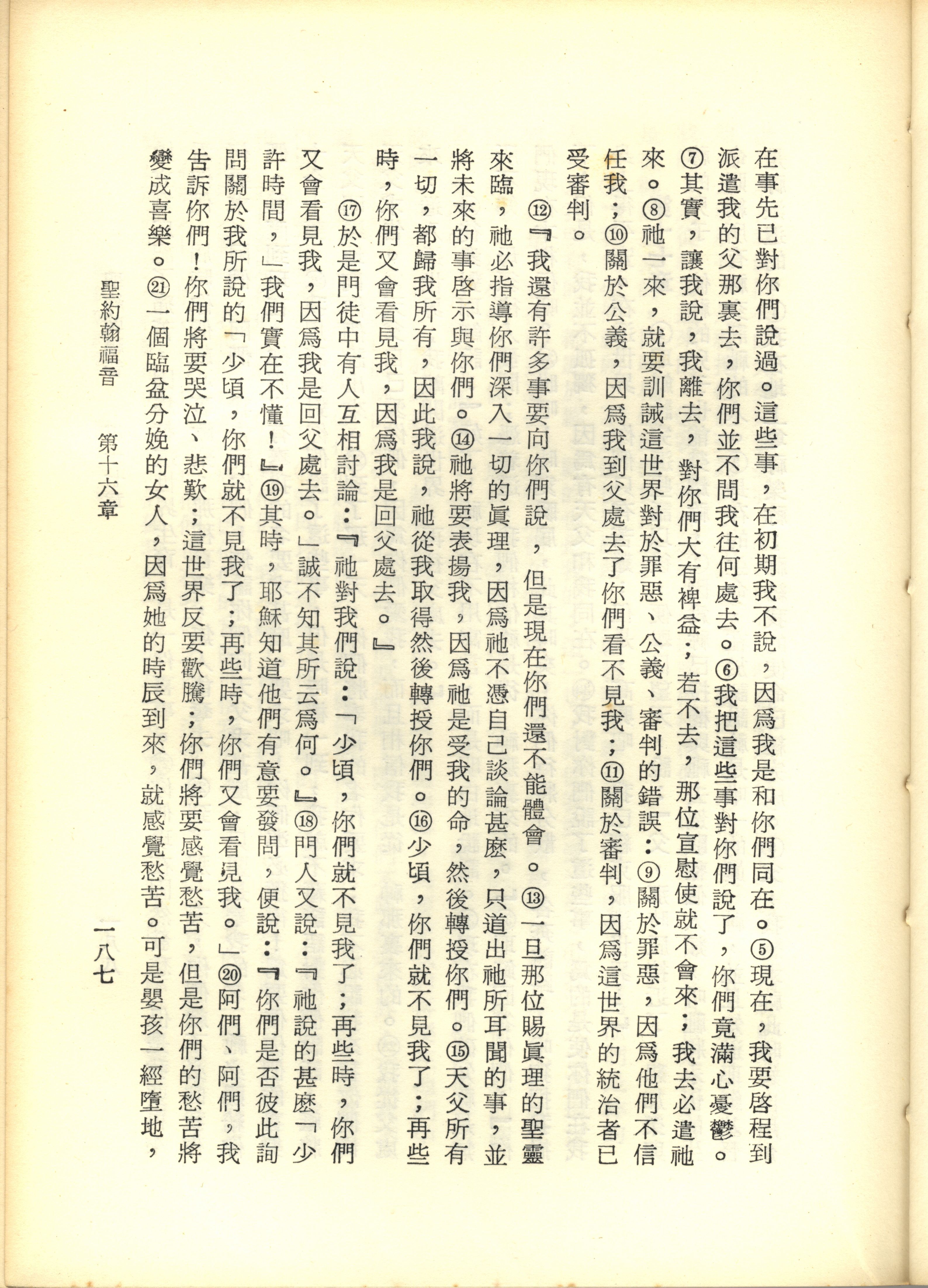 1967年新译新约全集 约翰福音 16 章 5 节到 16 章 21 节