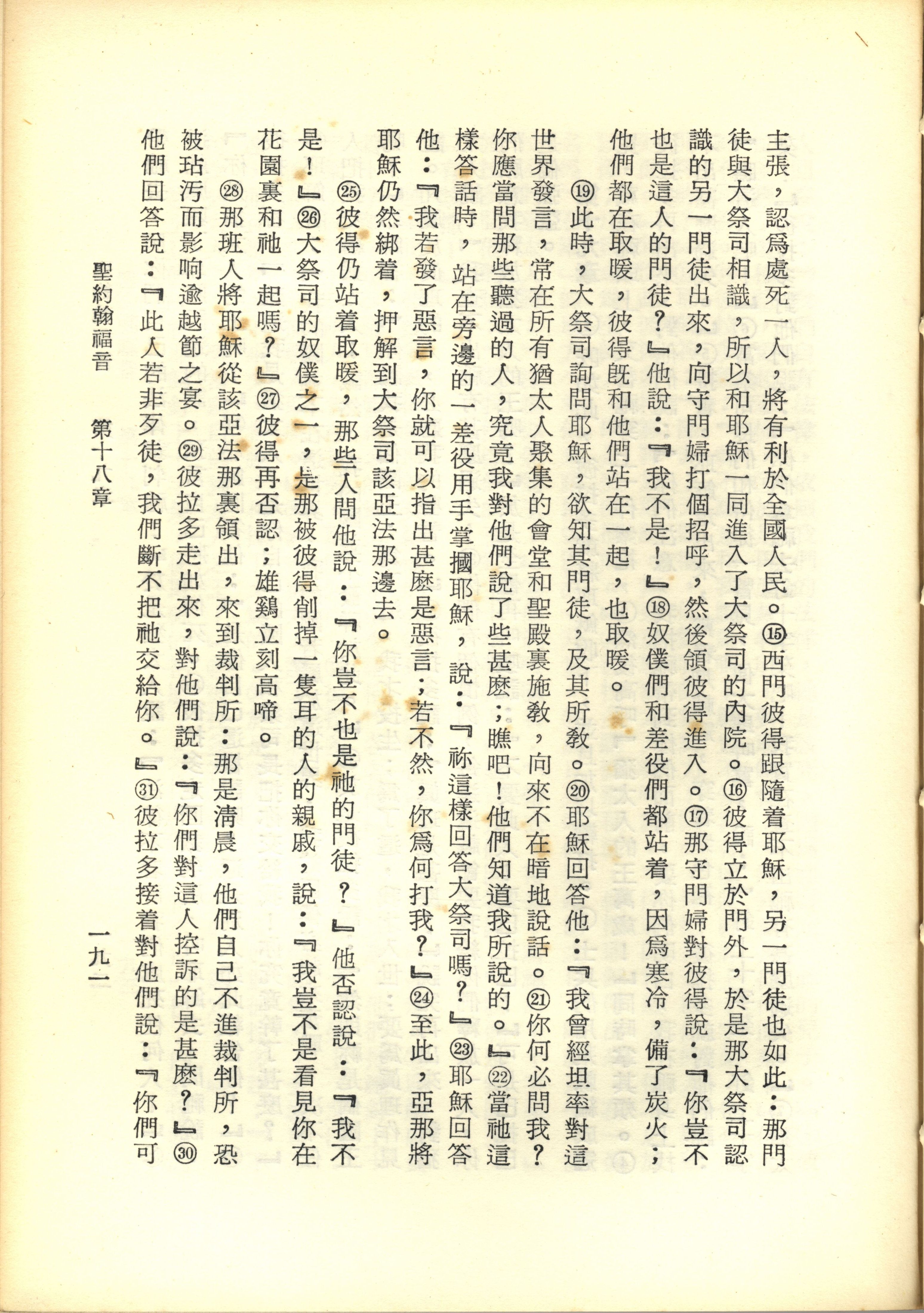 1967年新译新约全集 约翰福音 18 章 15 节到 18 章 31 节
