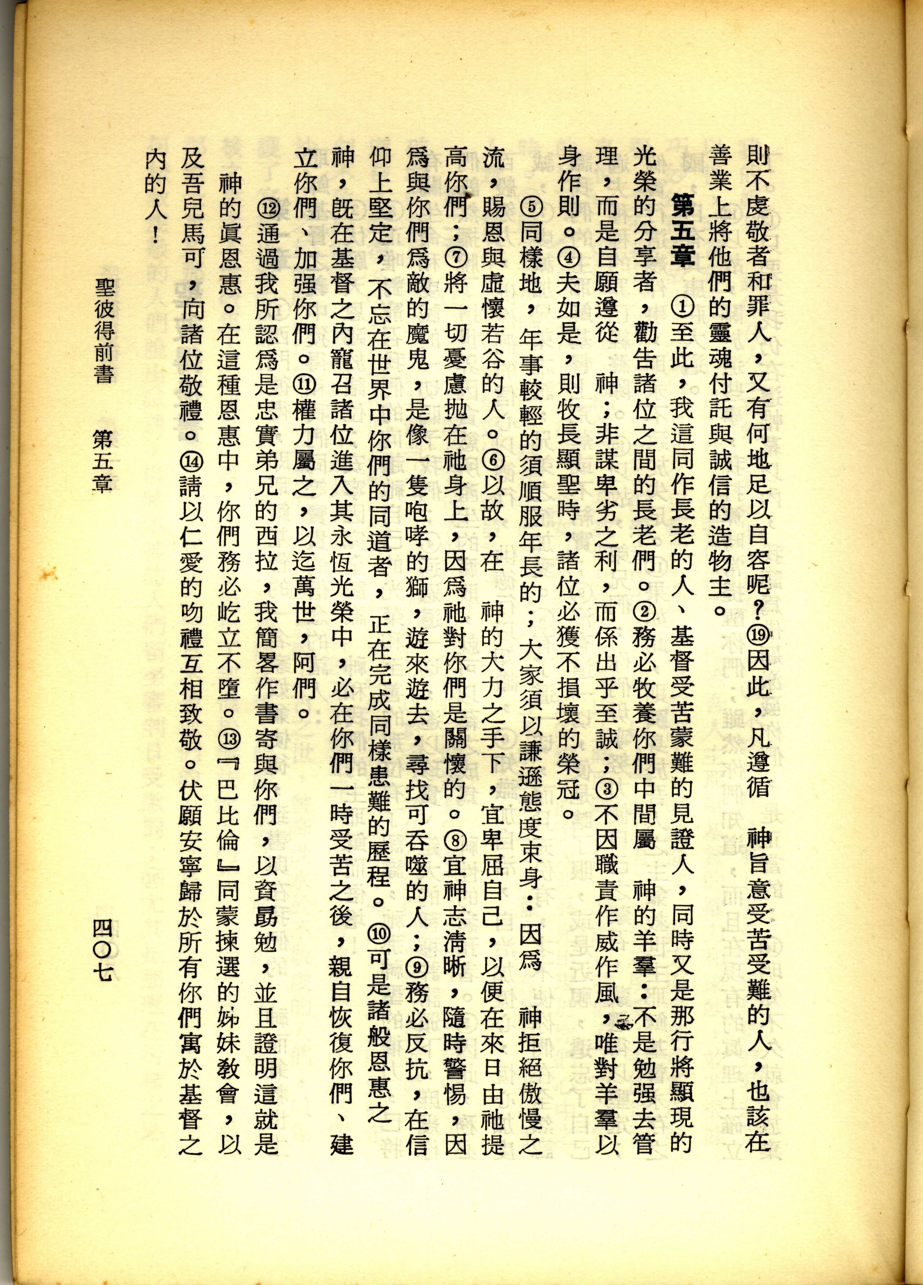 1967年新译新约全集 彼得前书 4 章 19 节到 5 章 14 节