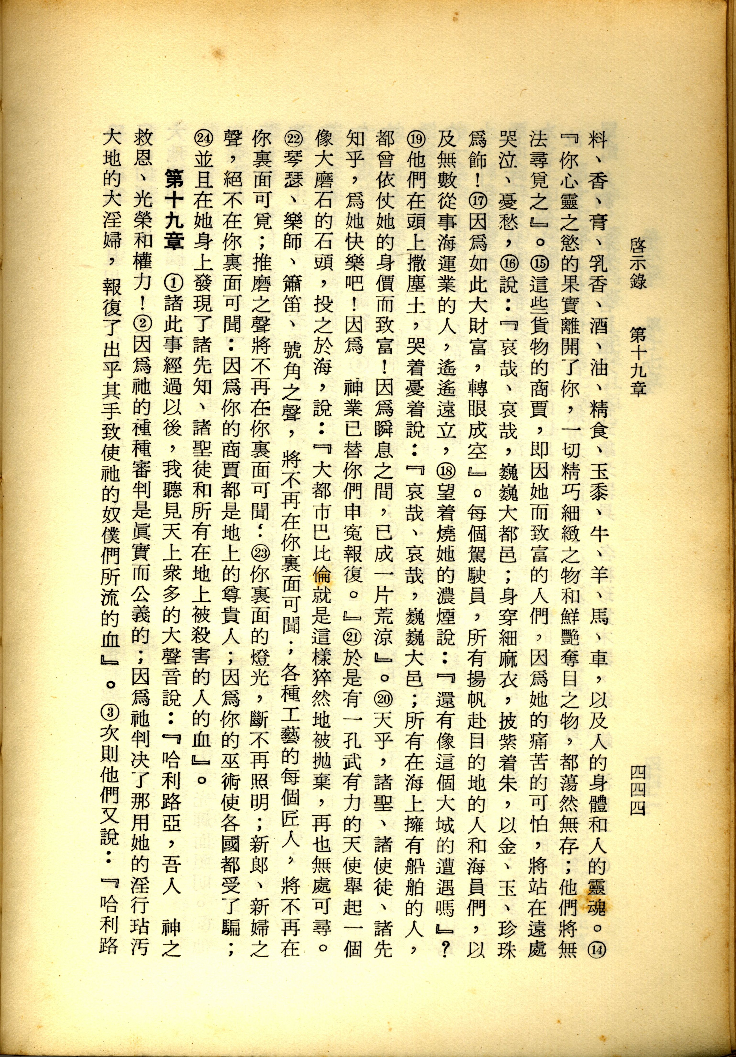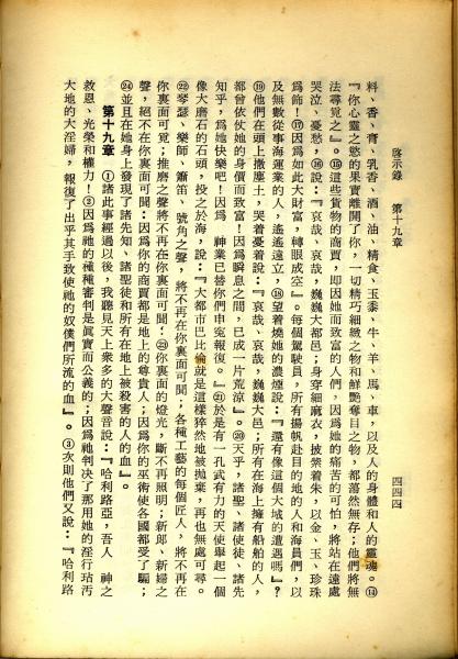 1967年新译新约全集 启示录 18 章 14 节到 19 章 3 节