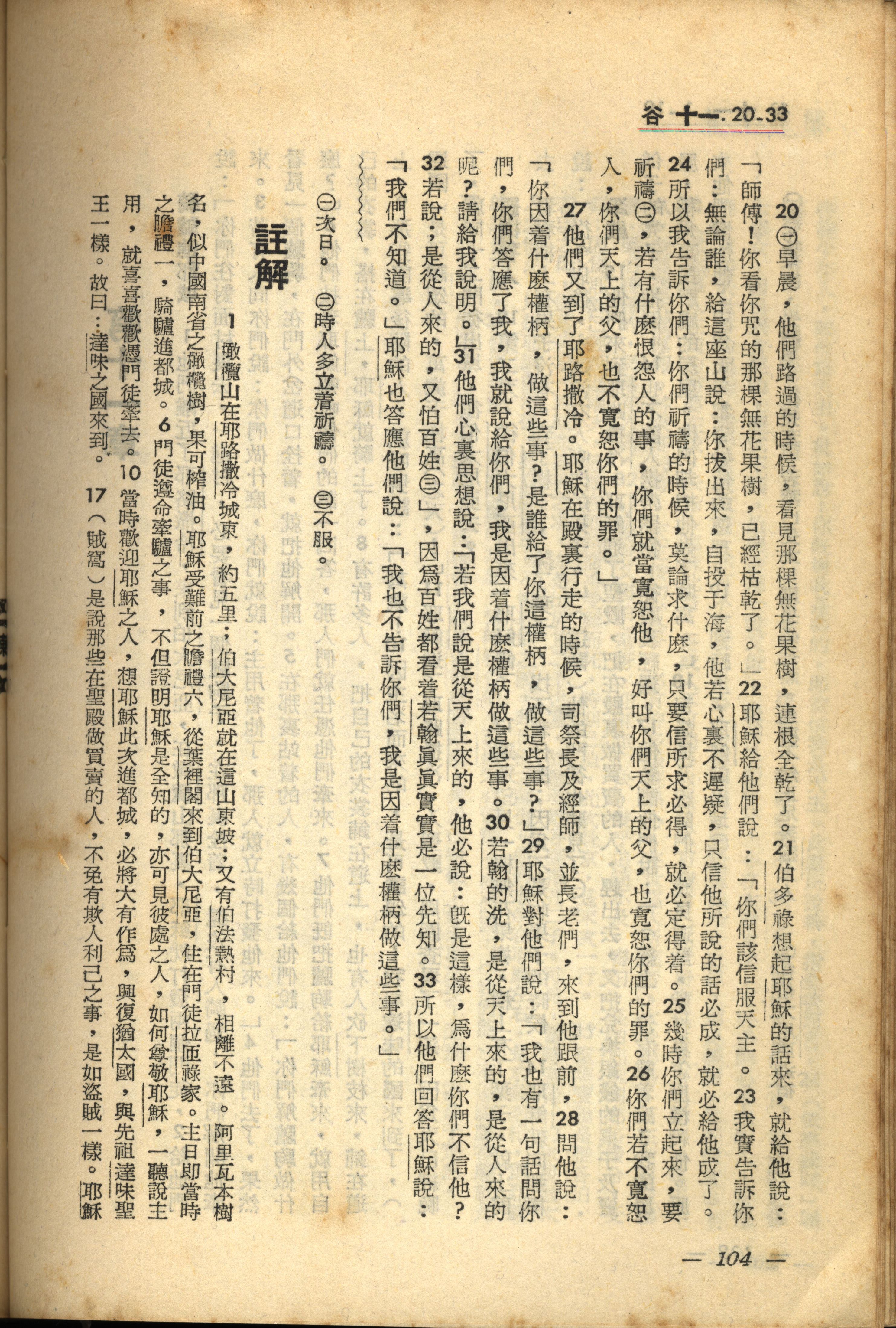 1956年新经全集 马可福音 11 章 20 节到 11 章 33 节