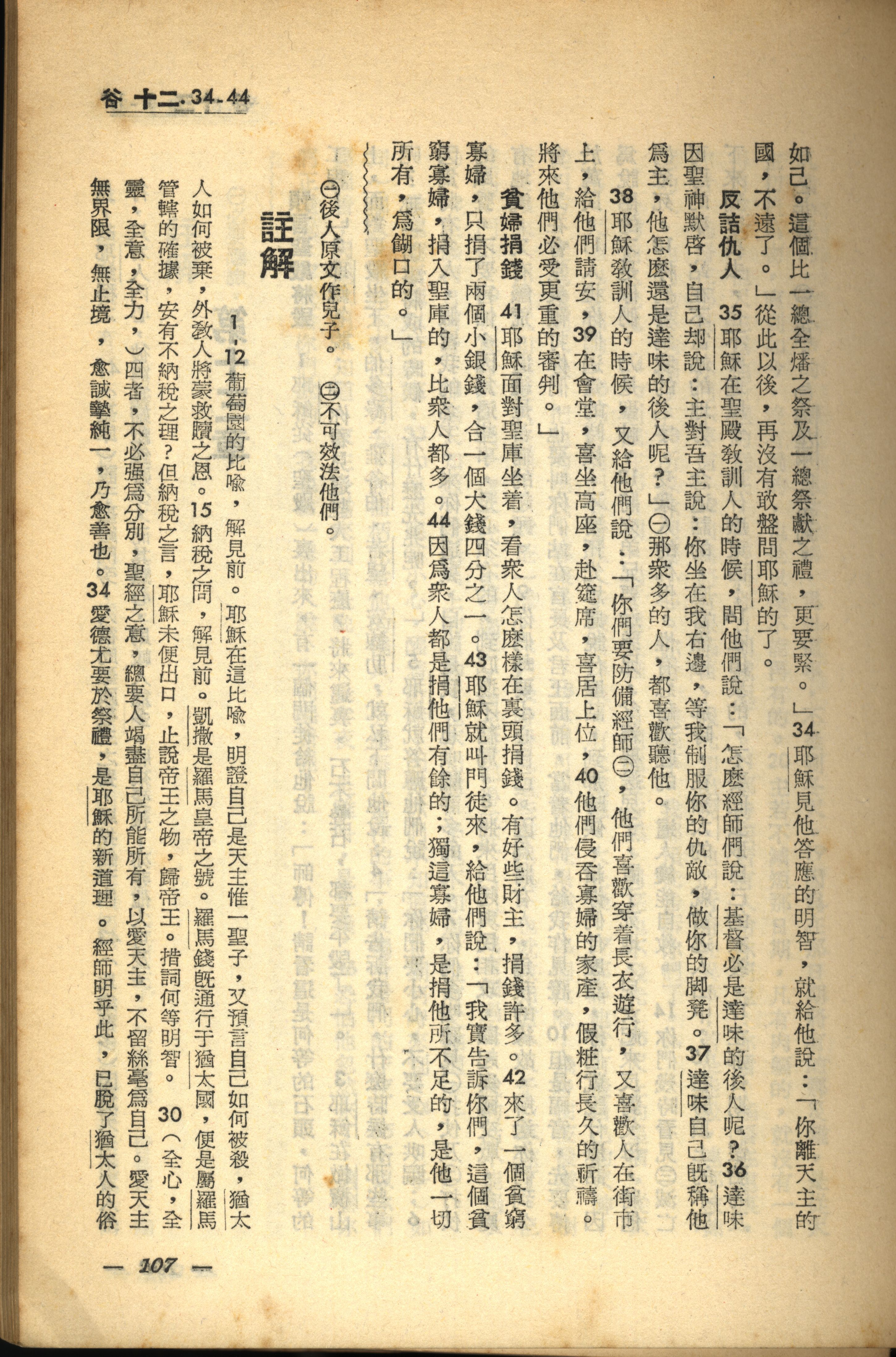 1956年新经全集 马可福音 12 章 34 节到 12 章 44 节