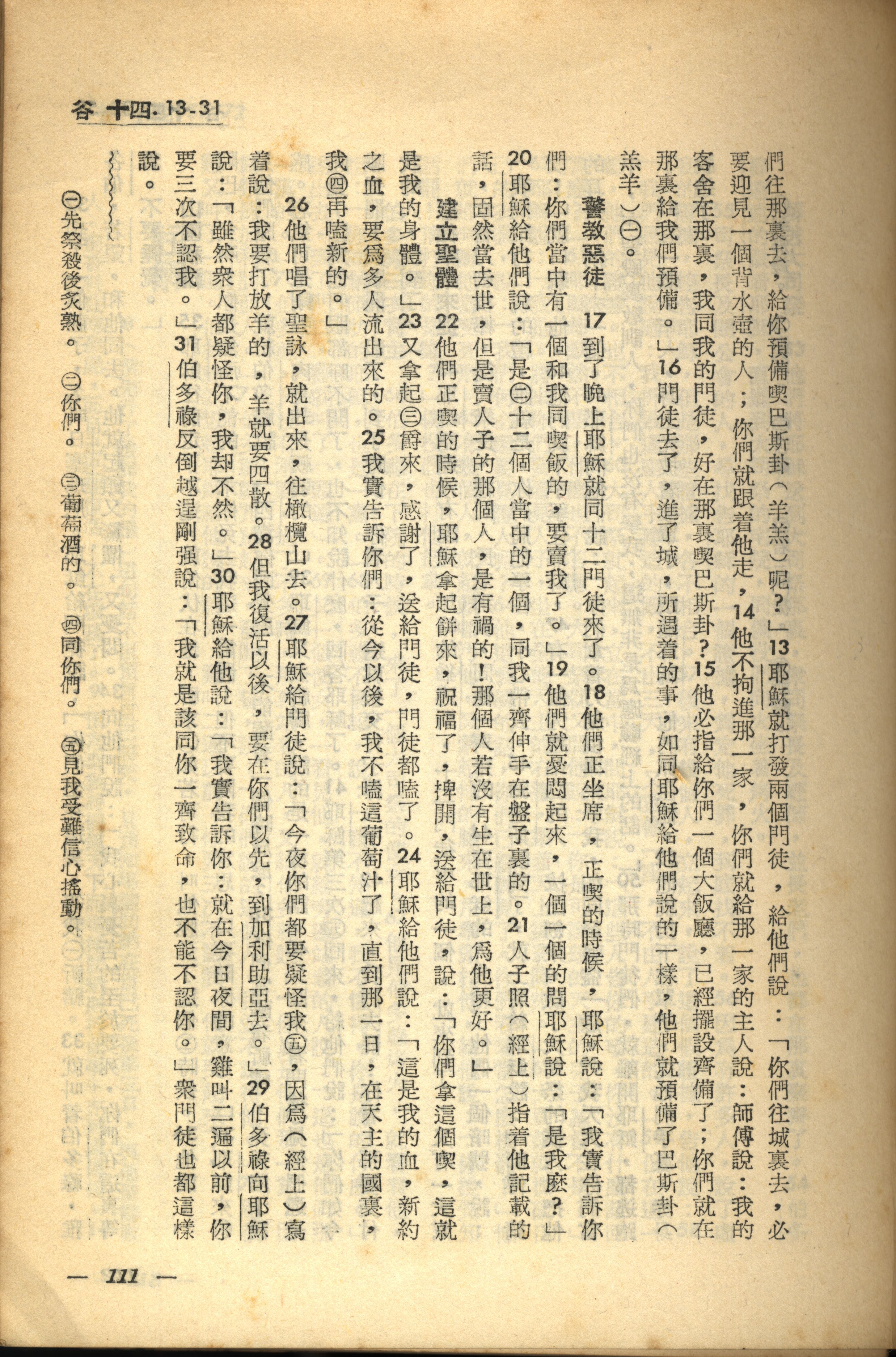 1956年新经全集 马可福音 14 章 13 节到 14 章 31 节