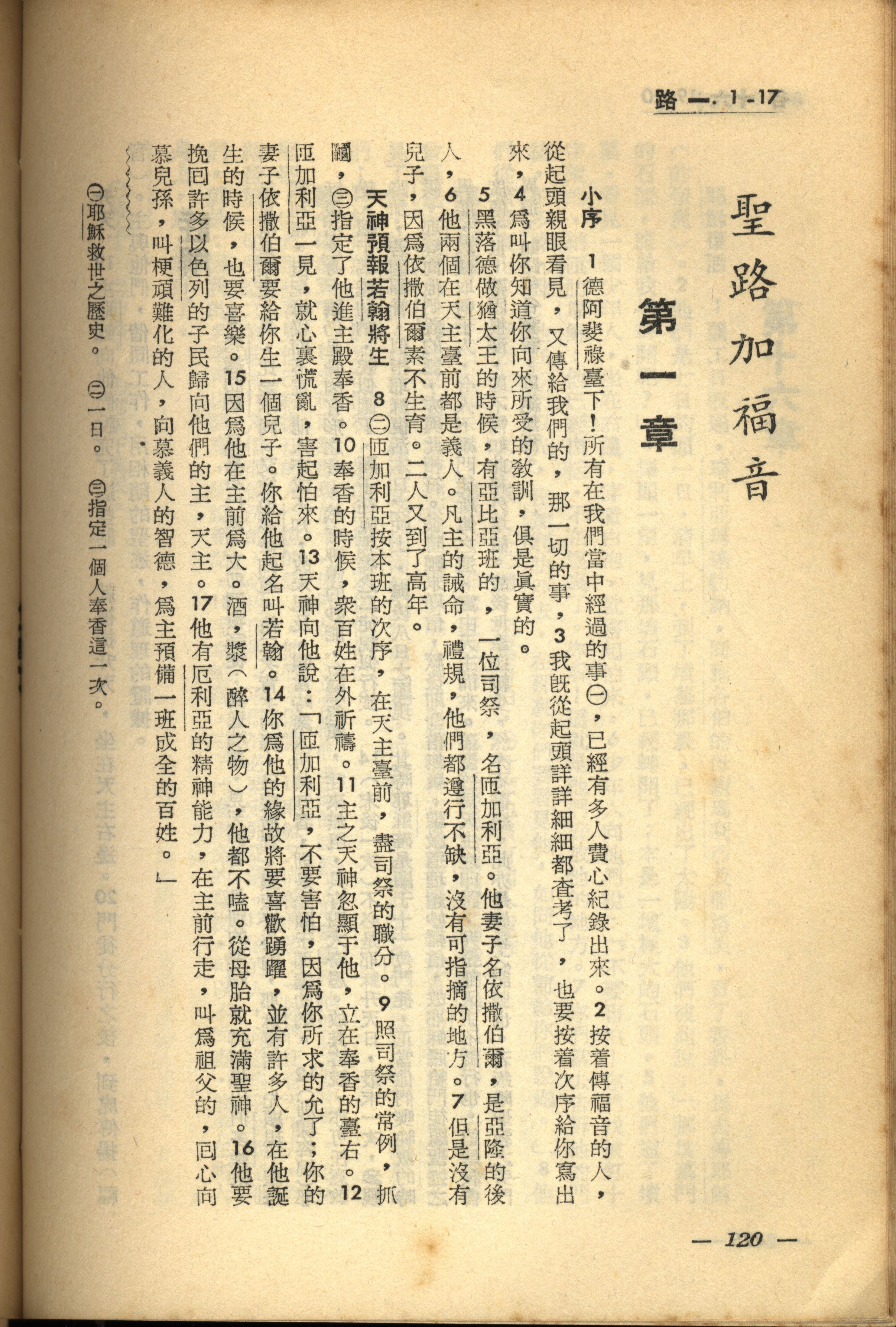 1956年新经全集 路加福音 1 章 1 节到 1 章 17 节